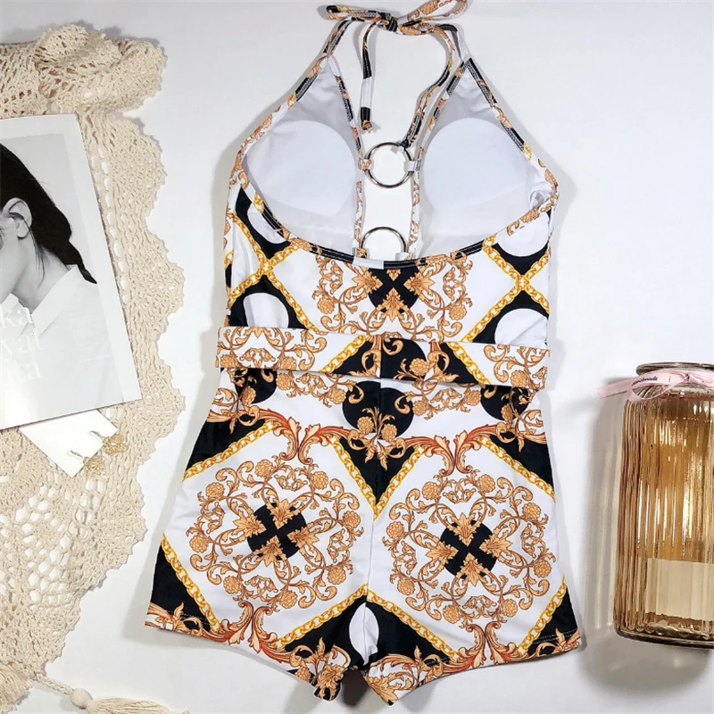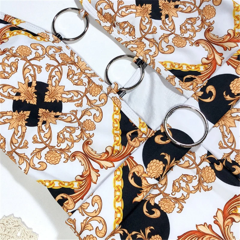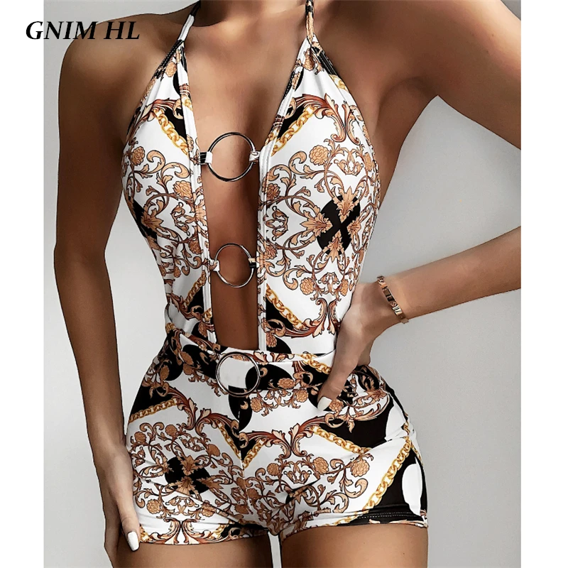 Женский слитный купальник GNIM, бикини с вырезами и принтом, летний бразильский купальник с ремнем, 2020