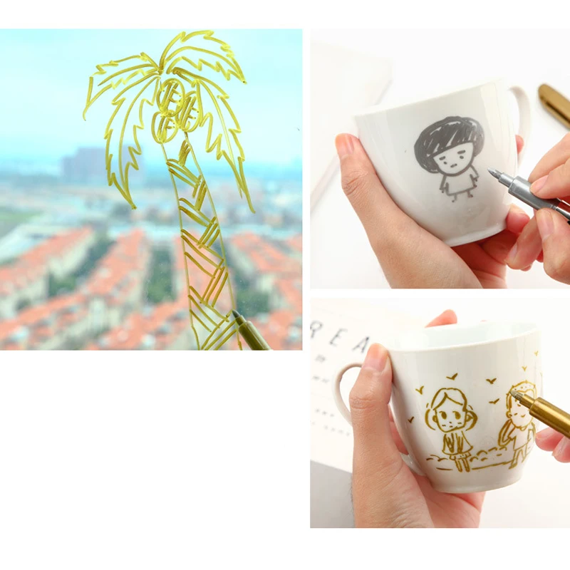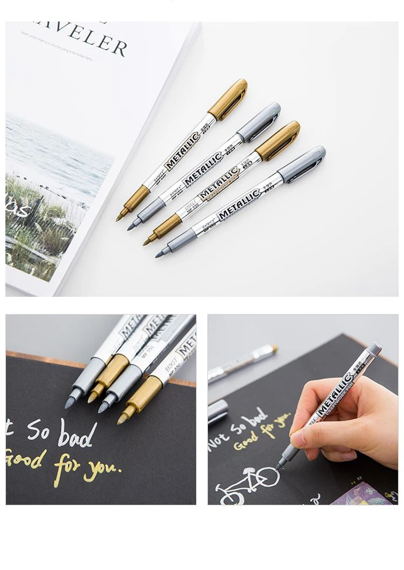 Маркеры для творчества, золотистые и серебристые металлические ручки для творчества сделай сам, ручки для рисования, подпись, поздравительная открытка, граффити, 10 шт.компл., 1,5 мм
