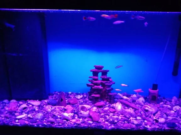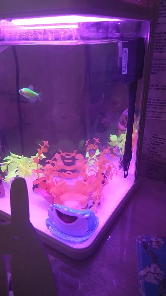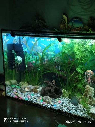 Классная лампа. Теперь аквариум очень красивый и необычный. Ставлю синий и карамельки светятся. Всю ночь горит подсветка вместа ночника в аквариуме.