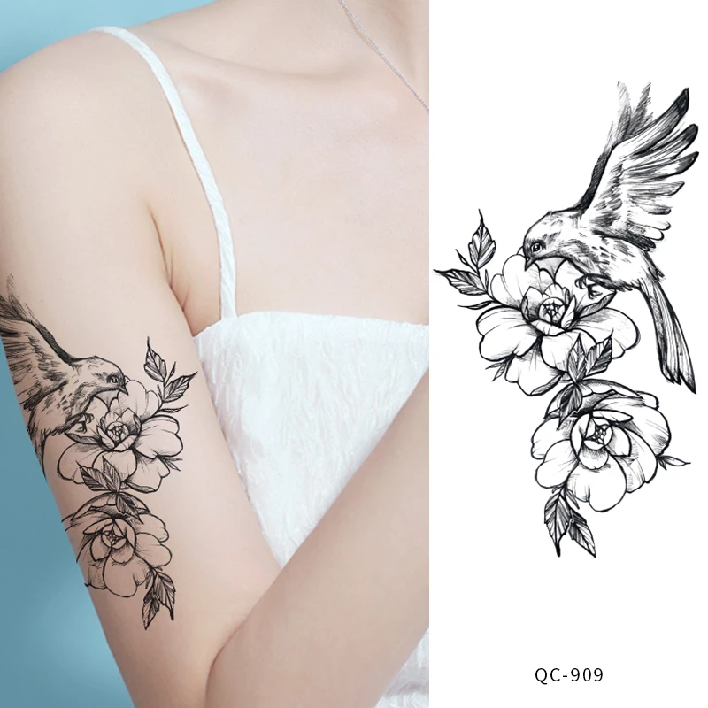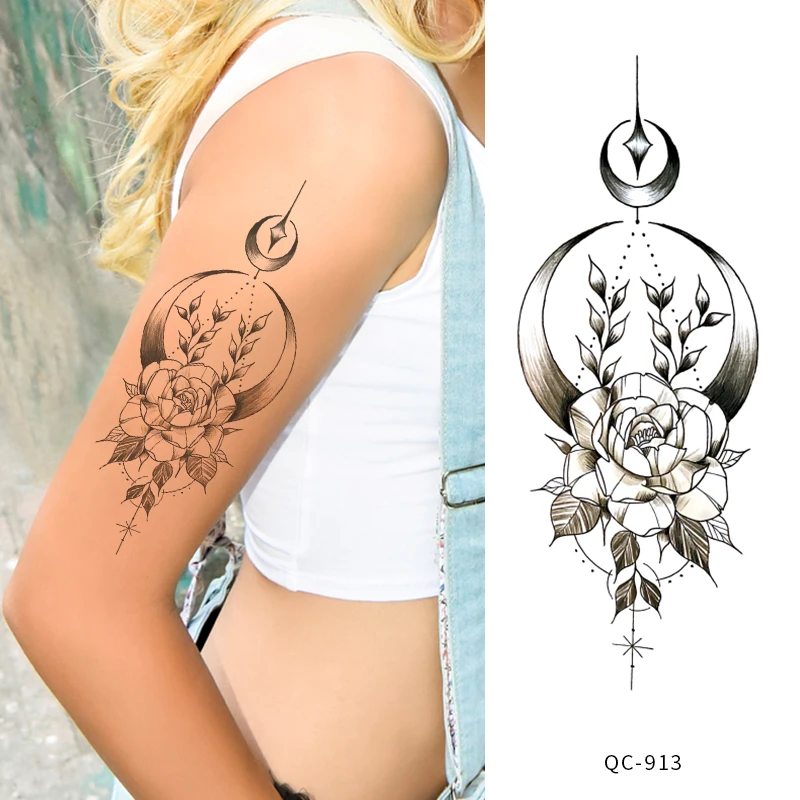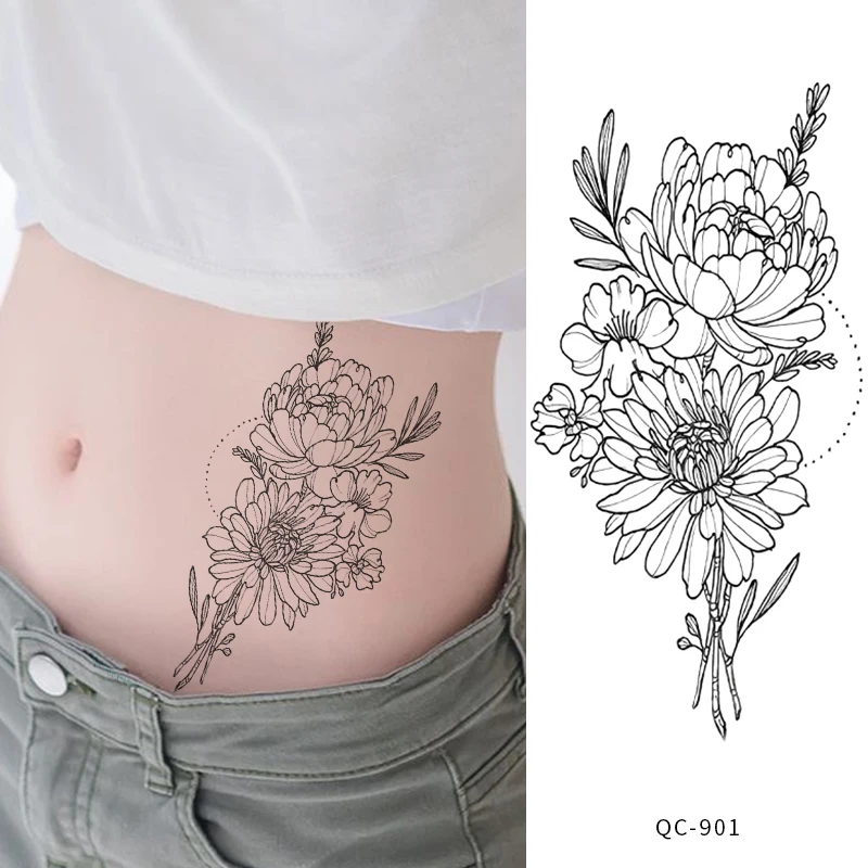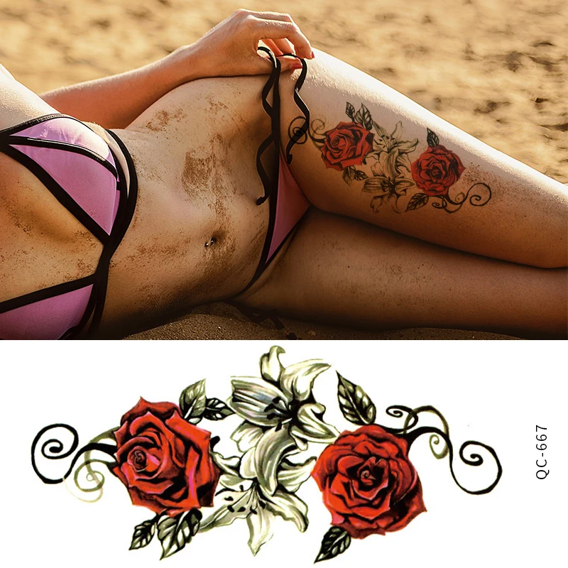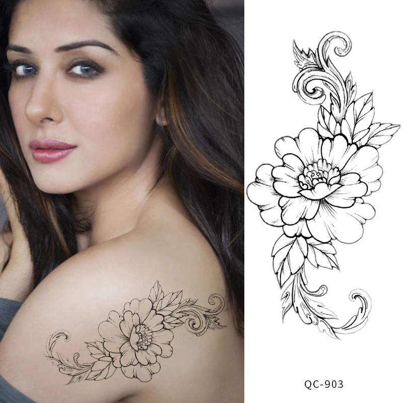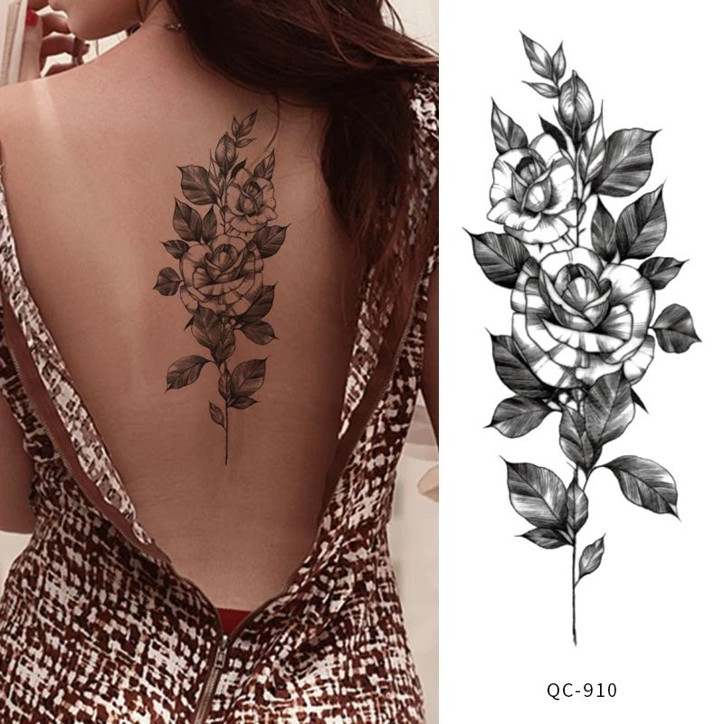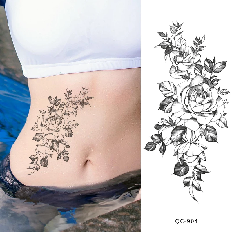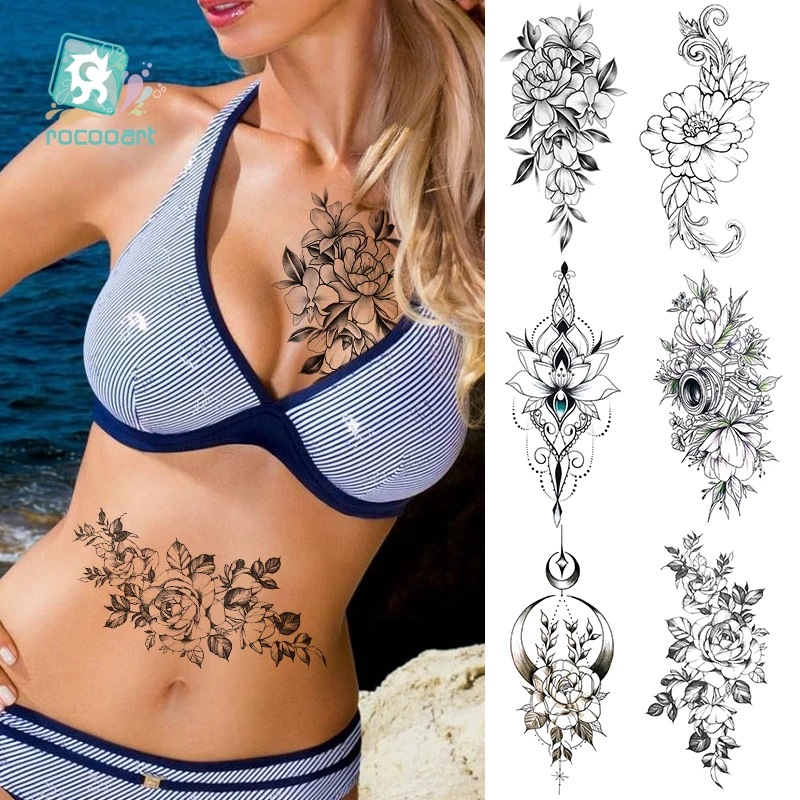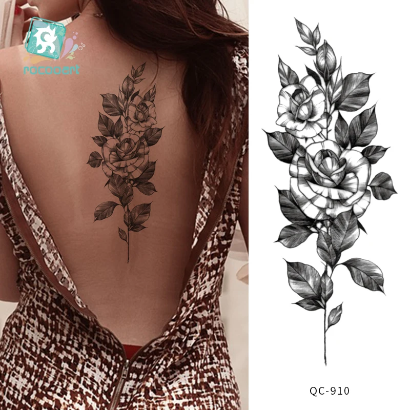 Rocooart черно-белые розы переводные наклейки на татуировку для женщин ювелирные изделия грудь талия Искусство Временные татуировки флэш-тату