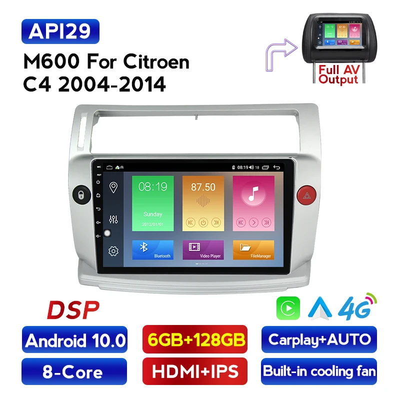 6 ГБ ОЗУ CarPlay Android 10 для Citroen C4 C-Triumph C-Quatre 2004-2009 Автомобильный мультимедийный wifi RDS IPS FM AM DAB DVR