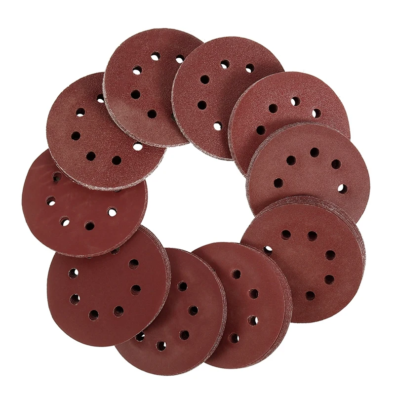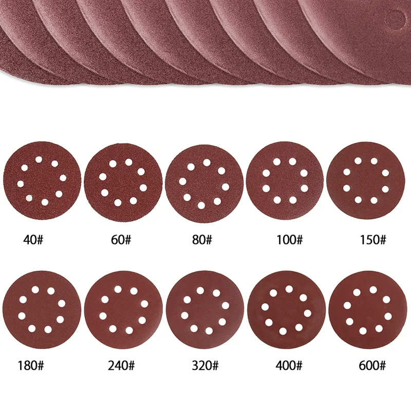 Круглые наждачные диски, 100 шт., 5 дюймов, 125 мм, 8 отверстий, пескоструйные листы, Зернистость 40-600, шлифовальные диски с крючком и петлей, абразивные диски для полировки