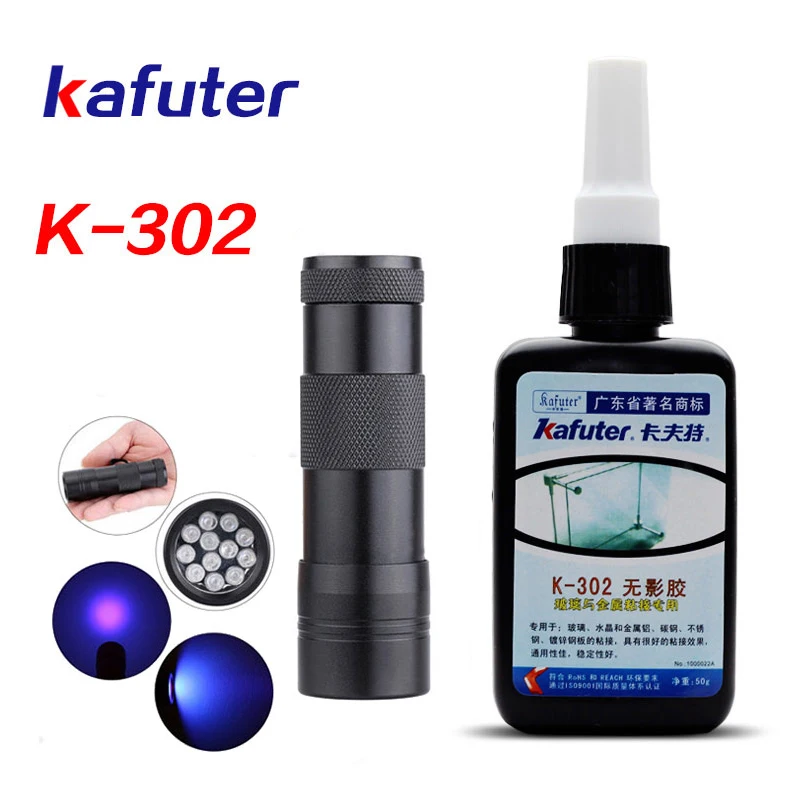 Сильный Kafuter 50 мл + 51led UV светильник УФ клей отверждения K-302 прозрачный с украшением в виде кристаллов и Стекло ABS металлический клей древесины