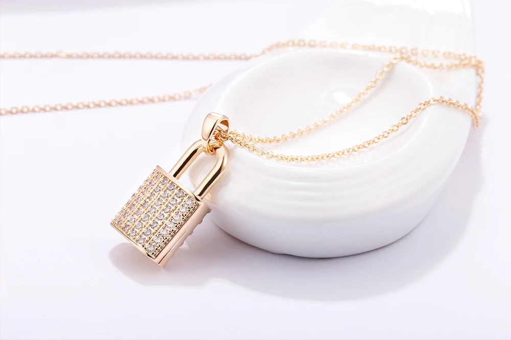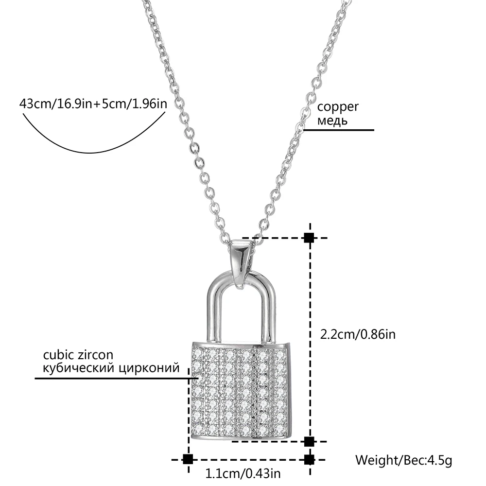 Тип: Новое модное женское ожерелье с подвескойЦвет ожерелья: золотой; Серебряный; Розовое золотоДлина цепочки: 43 см + 5 см Удлиненная цепьМатериал: медь + цирконФорма: навесной замокВес: 4,5 г