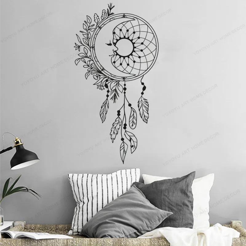 Ловец снов настенные наклейки луна виниловая наклейка на стену ночной символ настенное искусство перья Настенный декор Ловец снов спальня художественная роспись HJ542