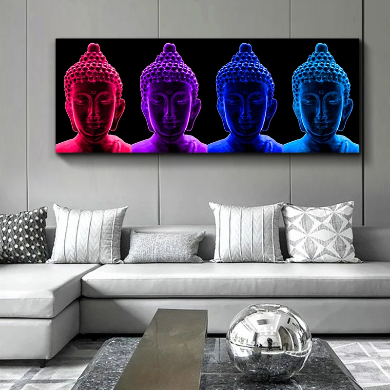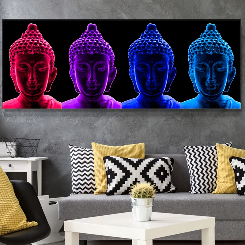 Холст Плакаты печать современный абстрактный буддизм Живопись стены искусства Красочный Будда Модульная картина для гостиной украшения дома