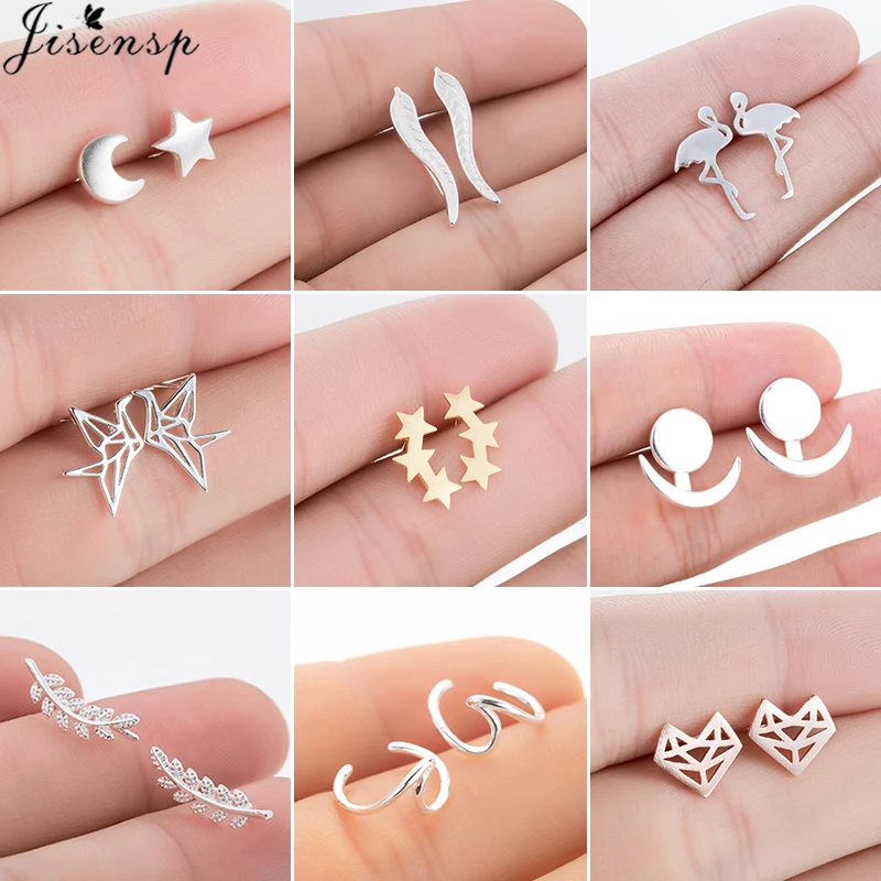 Серьги-гвоздики Jisensp в Корейском стиле с искусственными звездами, металлические серьги ручной работы с листьями волны для женщин и девушек, серьги-гвоздики для вечевечерние