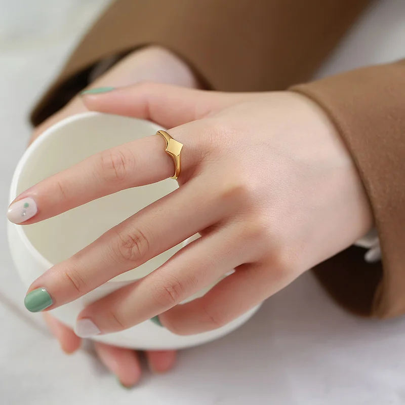 Элегантное индивидуализированное кольцо с именем для женщин, кольцо из нержавеющей стали золотого цвета с вывеской и штампом, круглые и квадратные инициальные ювелирные изделия на заказ