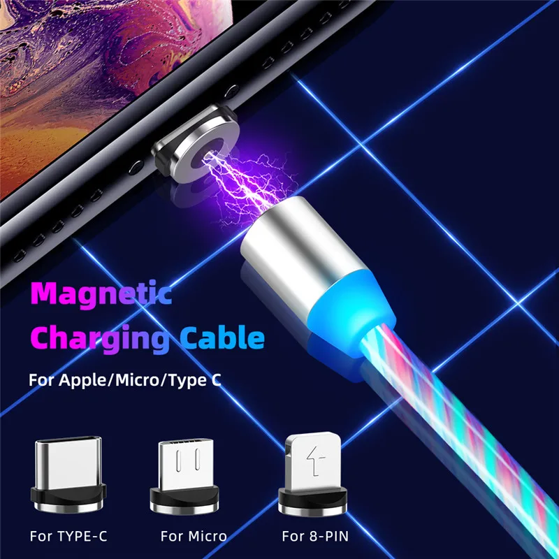 СВЕТОДИОДНЫЙ Магнитный зарядный кабель 1 м2 м Micro USB Тип C заряд...
