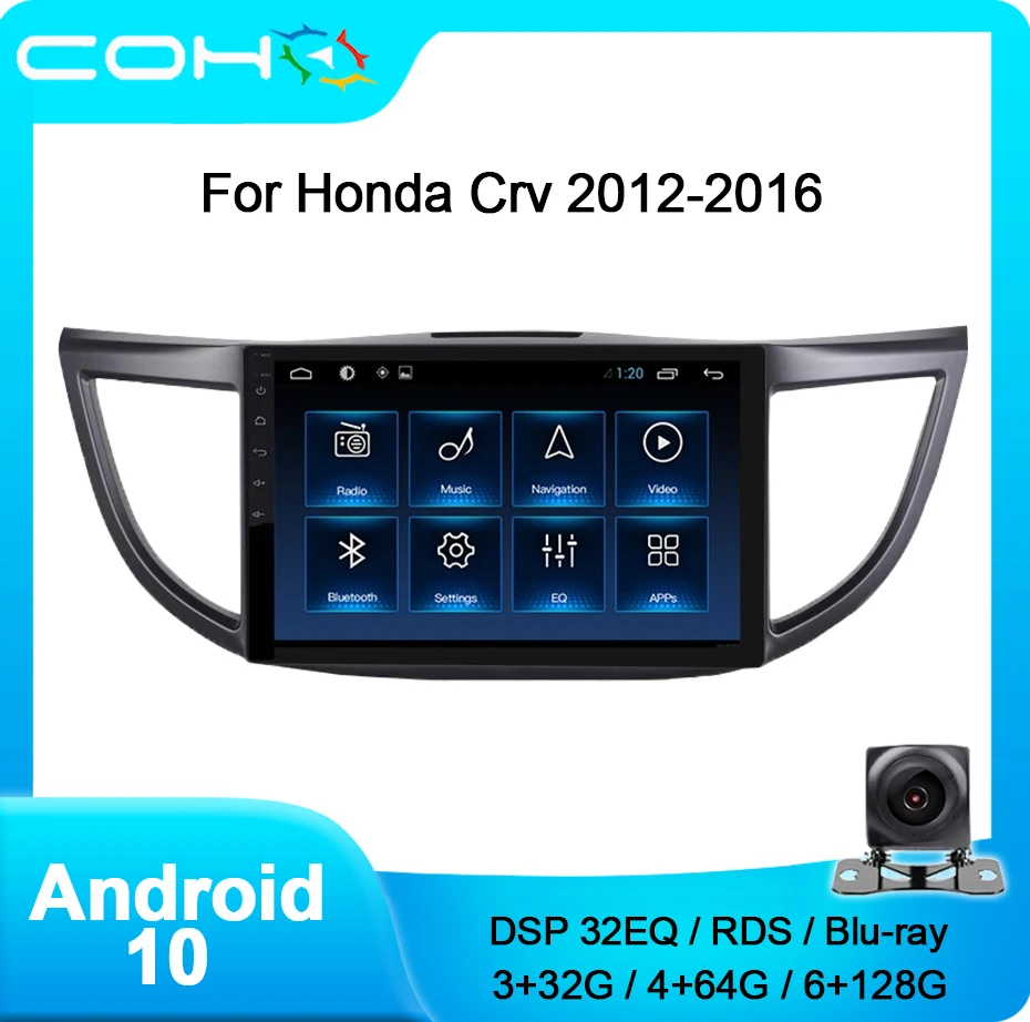Автомобильный мультимедийный плеер, радио, стерео приемник для Honda Crv 2012-2016, Android 10,0, Восьмиядерный процессор, 6 + 128G Gps