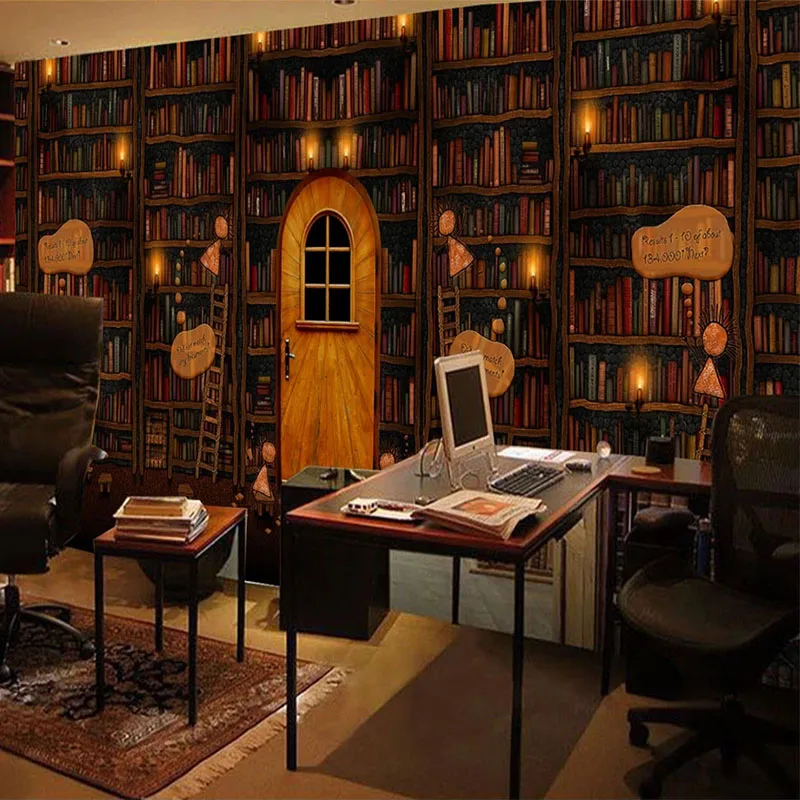 Настенные обои в европейском стиле на заказ, ретро-обои с рисунком книжной полки, библиотеки, кабинета, декор для стен, настенные бумаги для 3 D гостиной