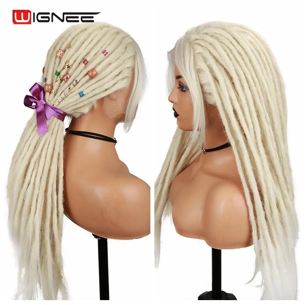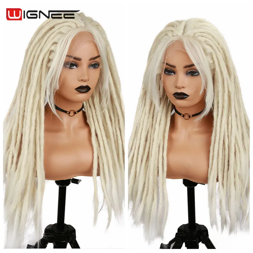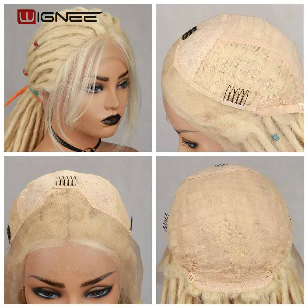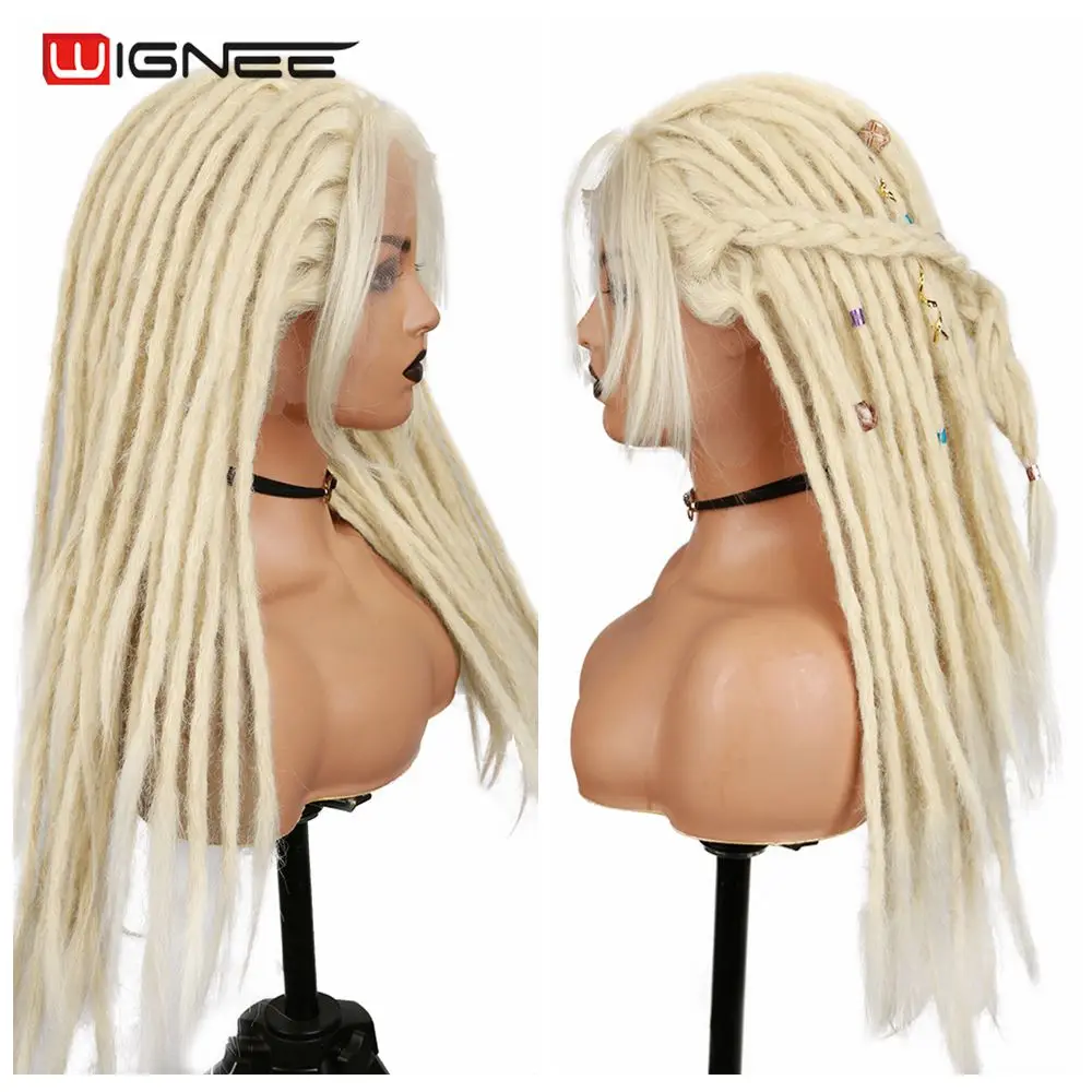 Синтетический парик Wignee блонд, дреды, плетеный вручную, грязный головной убор, кружевной передний парик для чернокожих женщин, плетеный вязаный крючком