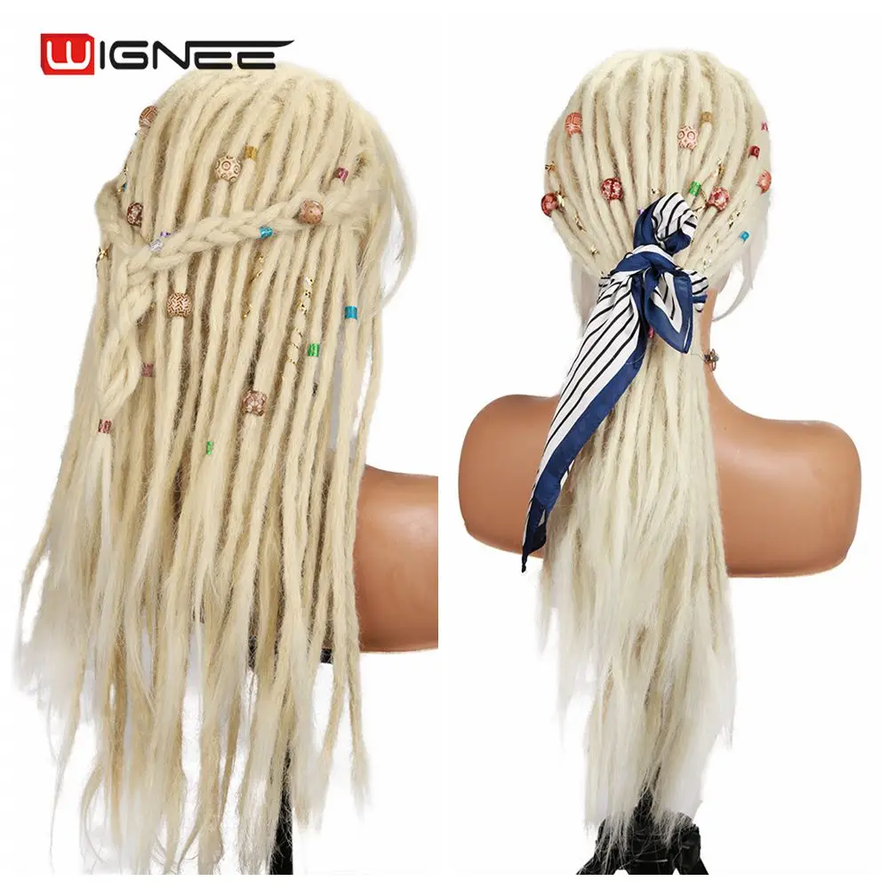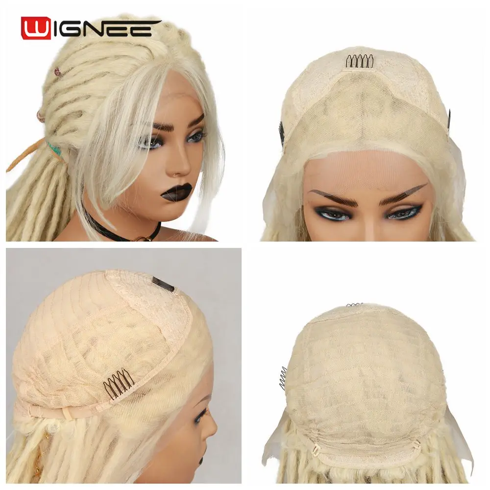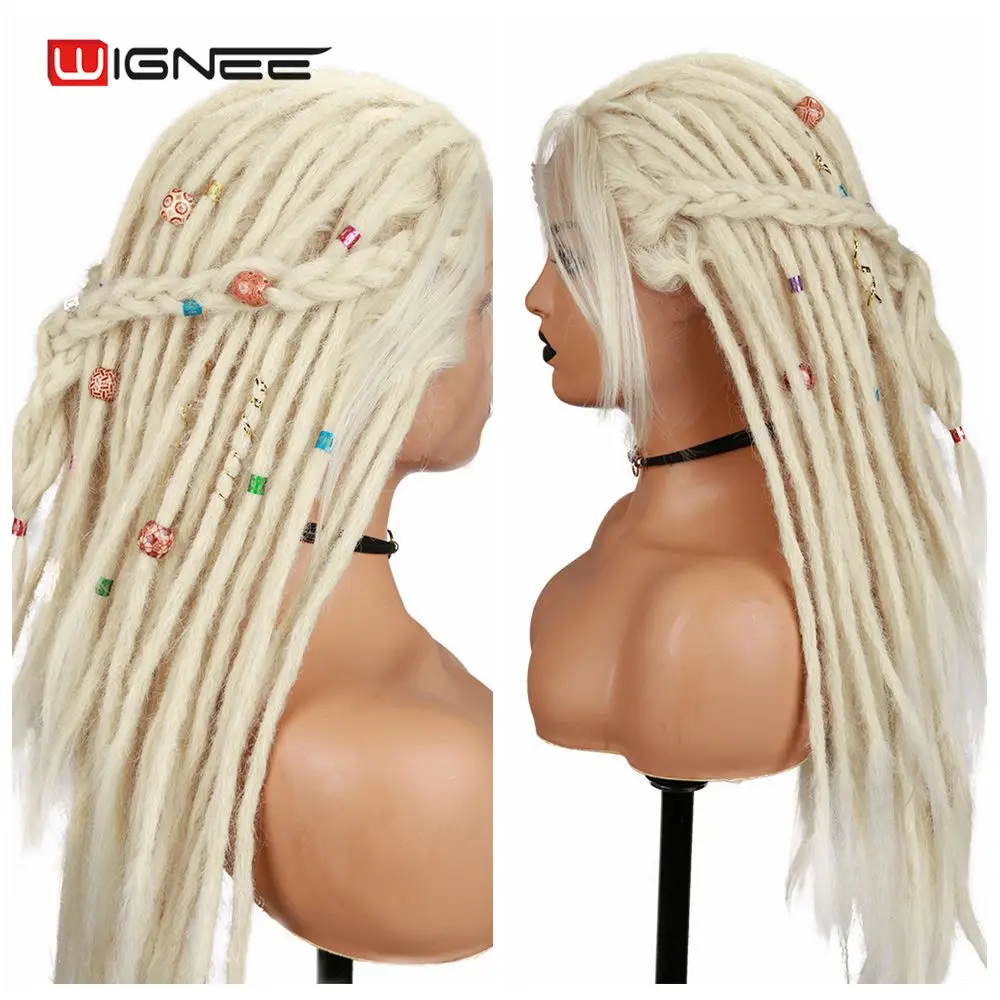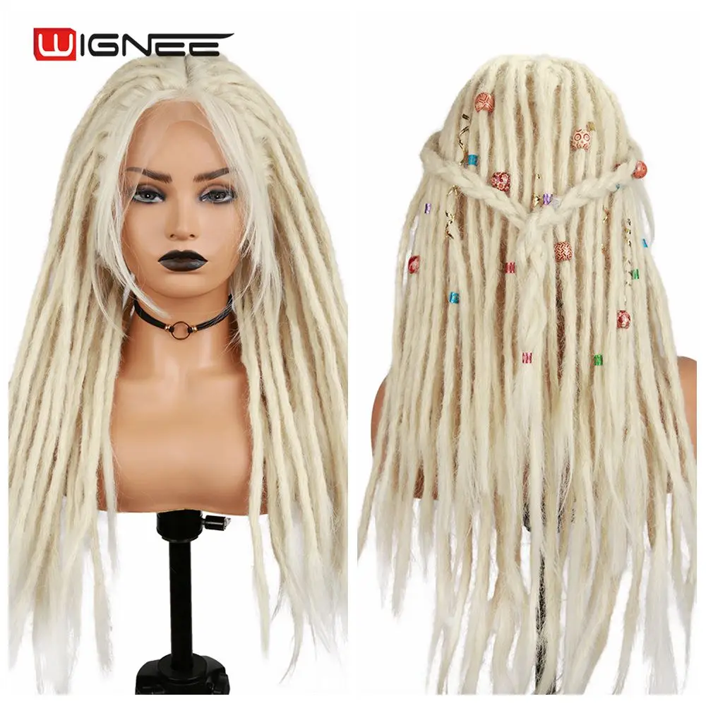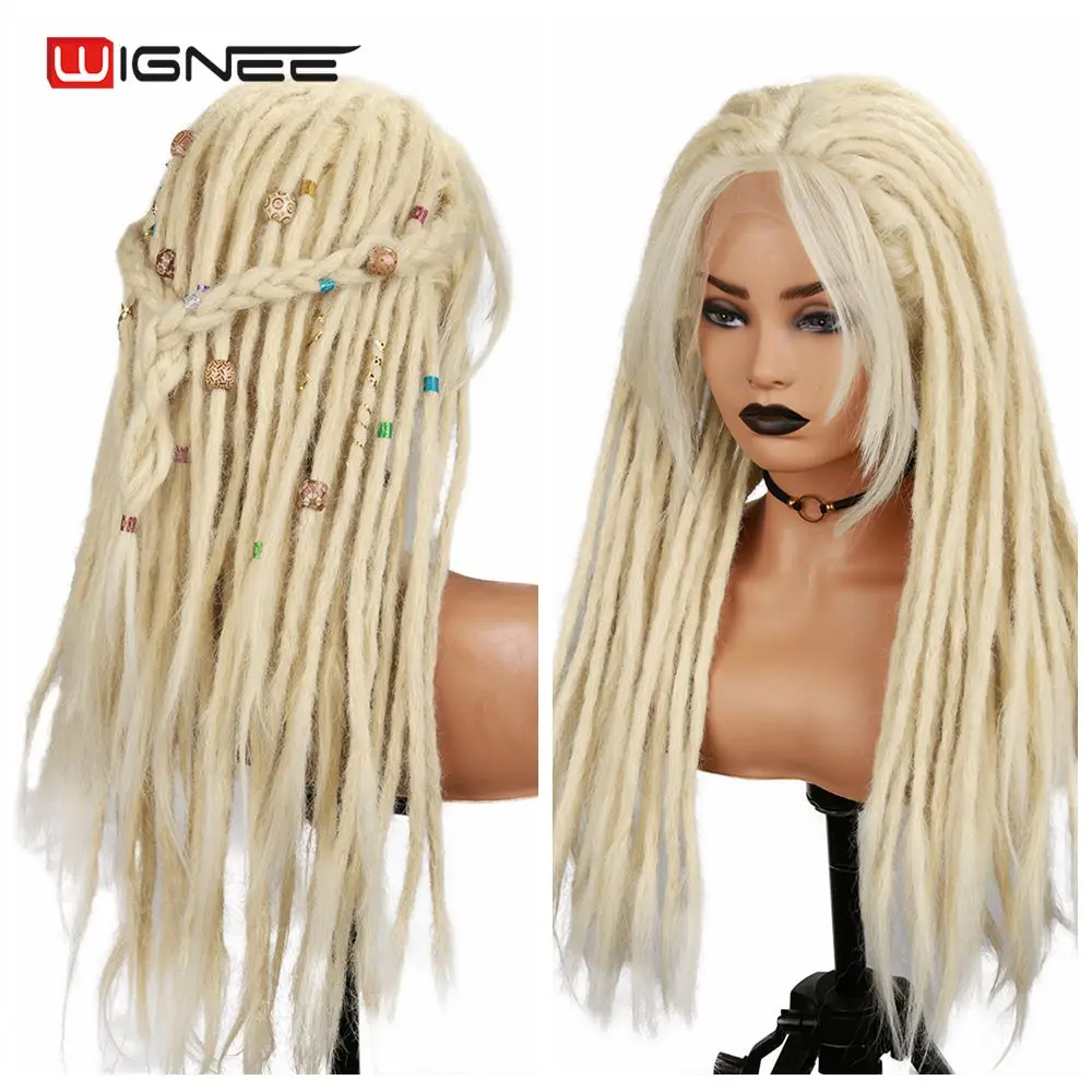 Синтетический парик Wignee блонд, дреды, плетеный вручную, грязный головной убор, кружевной передний парик для чернокожих женщин, плетеный вязаный крючком