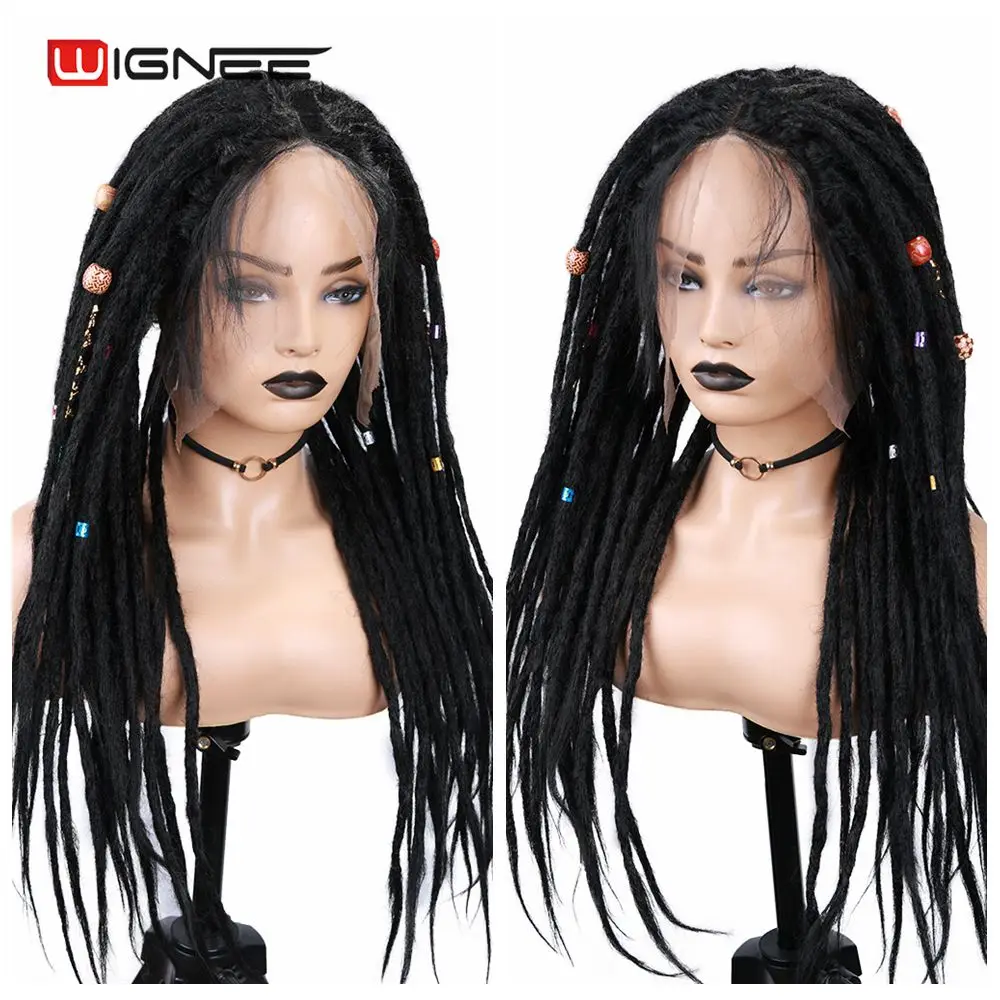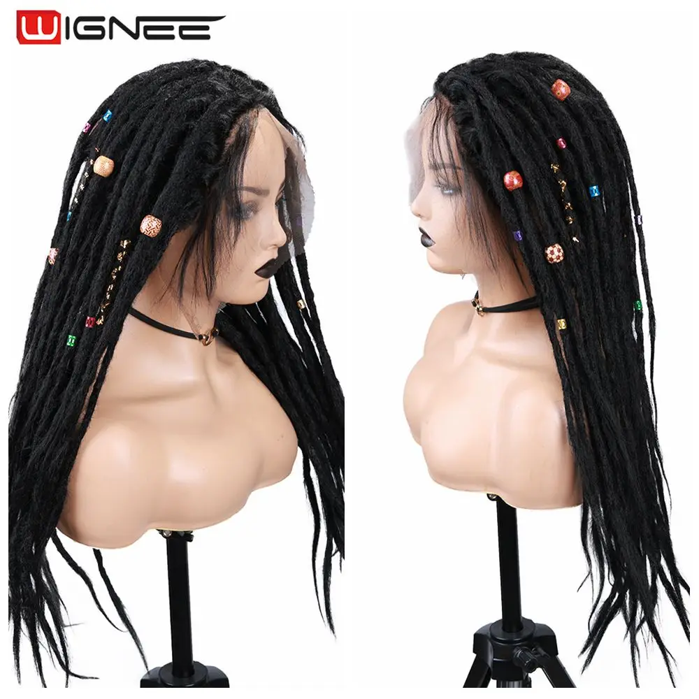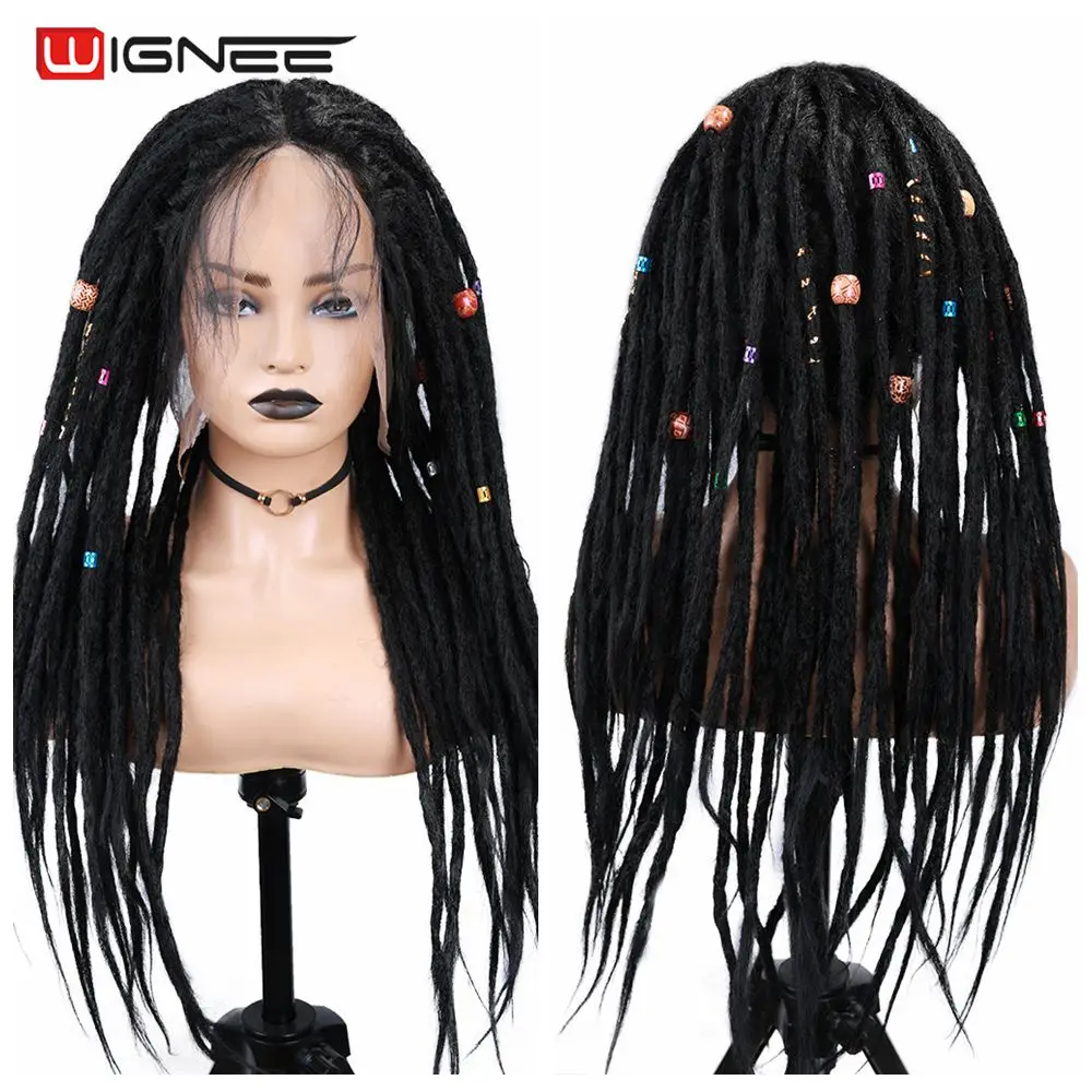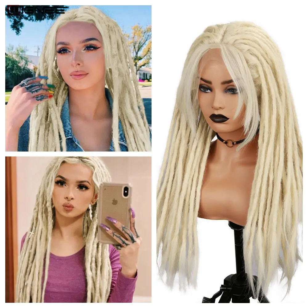Синтетический парик Wignee блонд, дреды, плетеный вручную, грязный головной убор, кружевной передний парик для чернокожих женщин, плетеный вязаный крючком