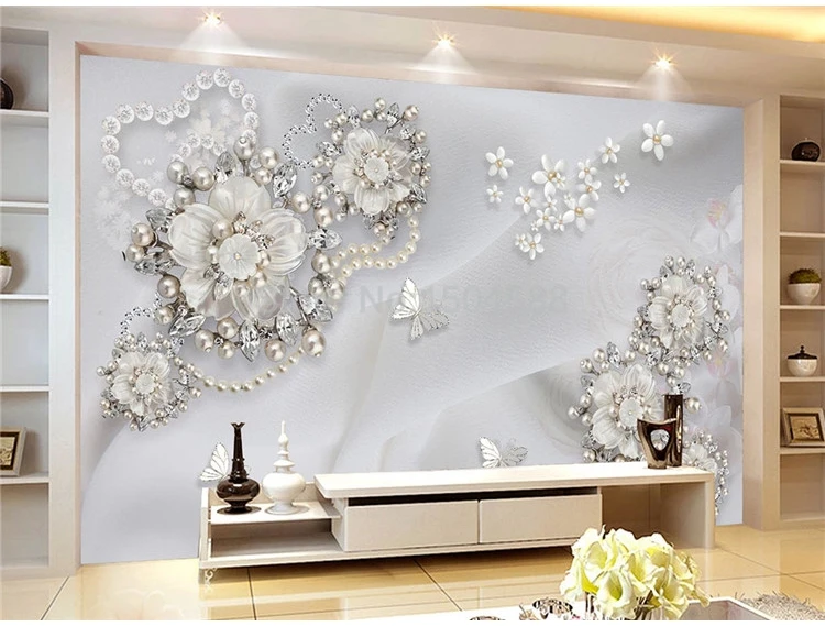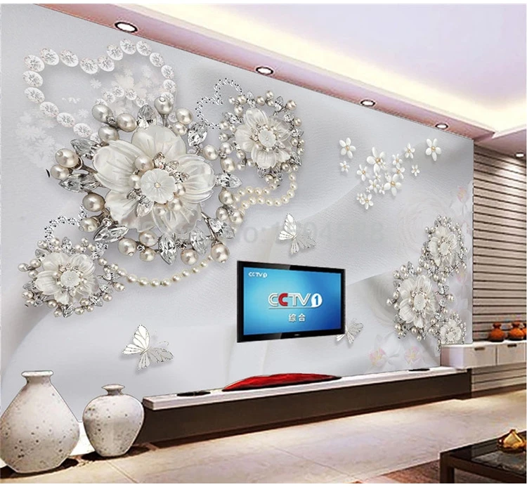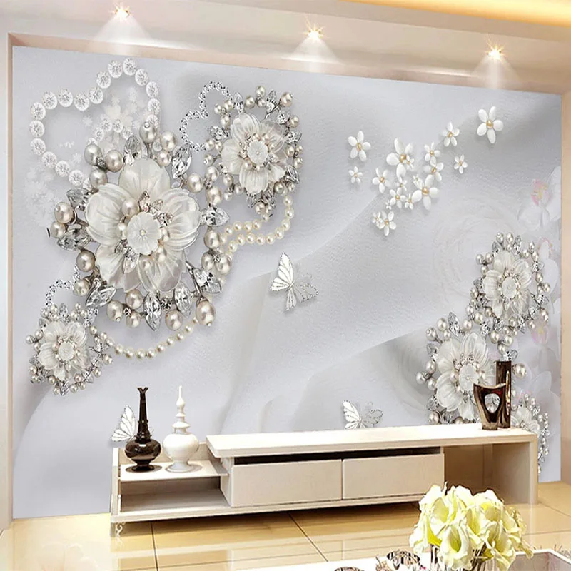 Настенные 3D росписи по индивидуальному заказу в европейском стиле, Роскошные 3D рельефные украшения с жемчугом, цветочные фотообои для гостиной, спальни
