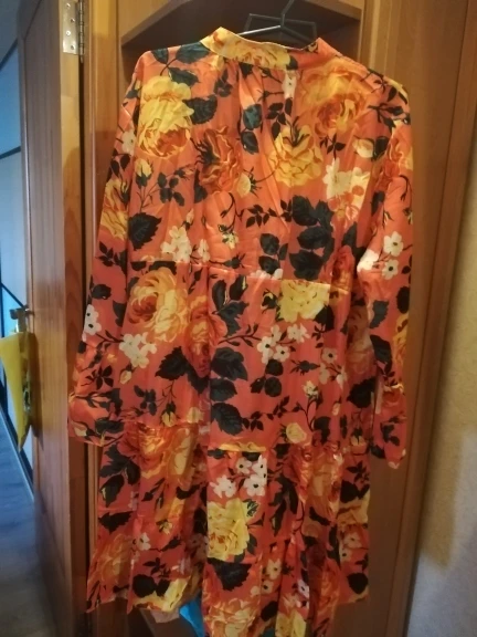 очень широкий крой .для беременных. цвет очень темный не как на картинке..рисунок блёклый. для меня немного коротковато, только на пляж в нем,