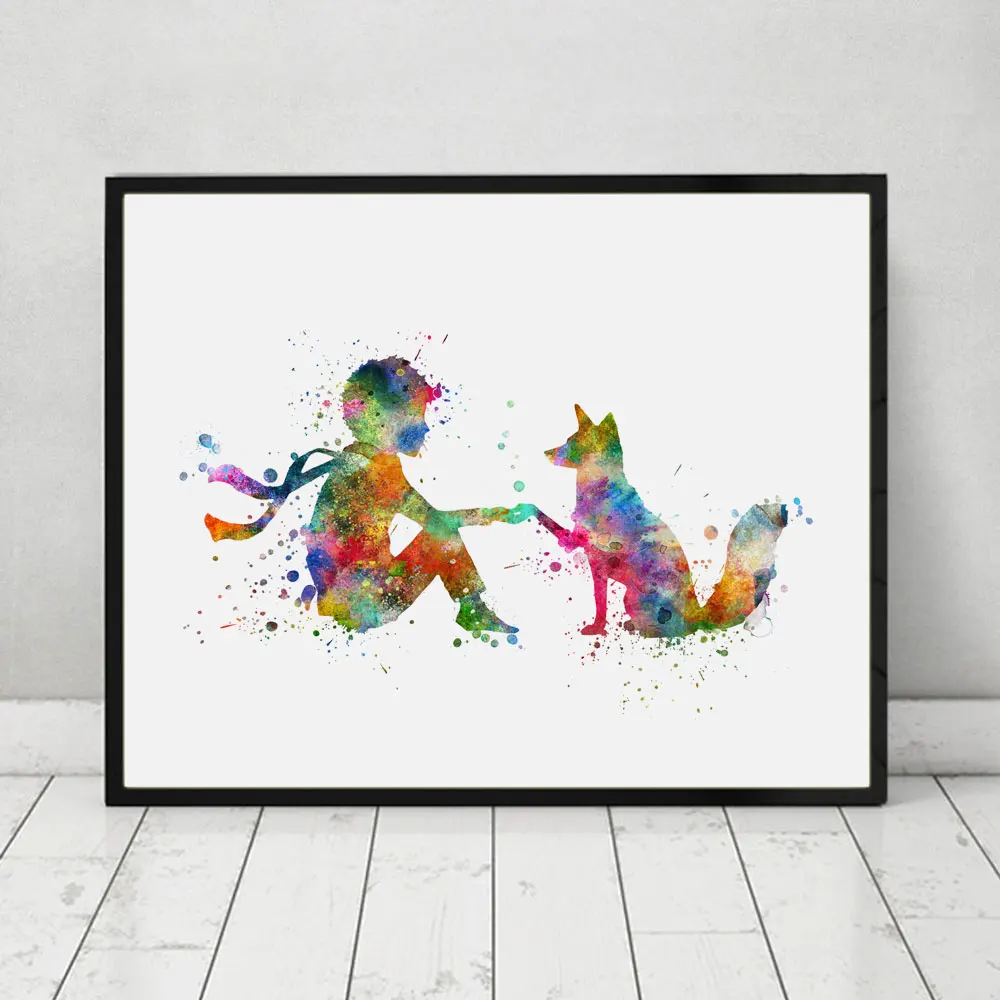 Картины на холсте в скандинавском стиле, художественный принт, Hd-постер, Маленький принц, лиса, акварельная картина, домашний декор стен для детской комнаты
