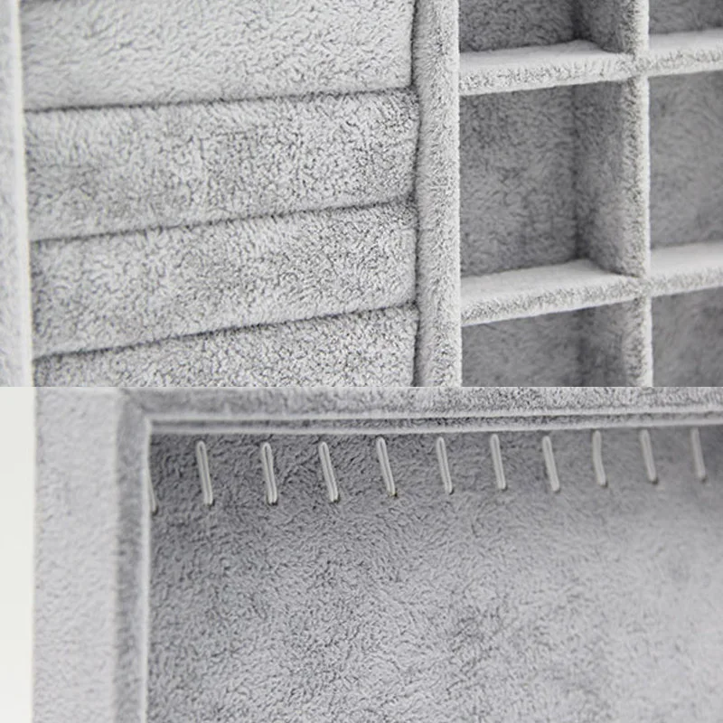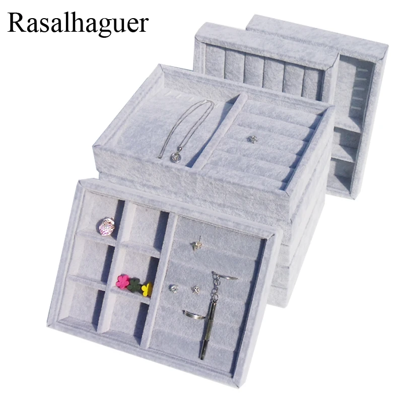 Ящик для ювелирных изделий ручной работы, органайзер для хранения, серый мягкий бархат, ювелирные изделия, серьги, ожерелья, кулон, браслет, лоток, 9 вариантов