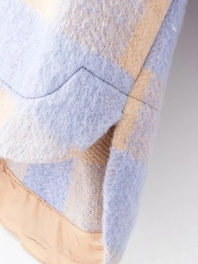 Женское пальто и куртки Klacwaya, зимняя свободная шерстяная рубашка в фиолетовую клетку для отдыха, одежда оверсайз