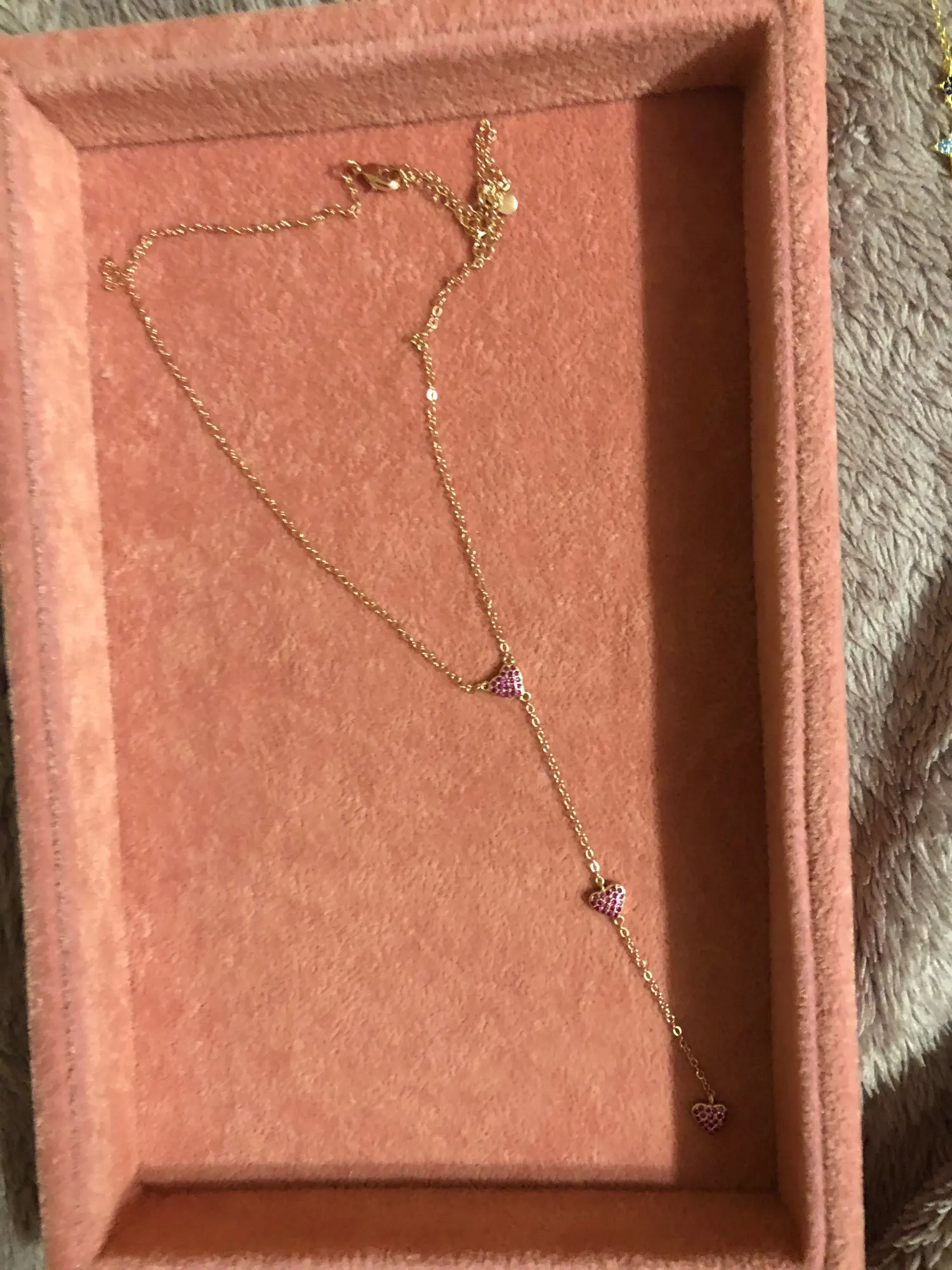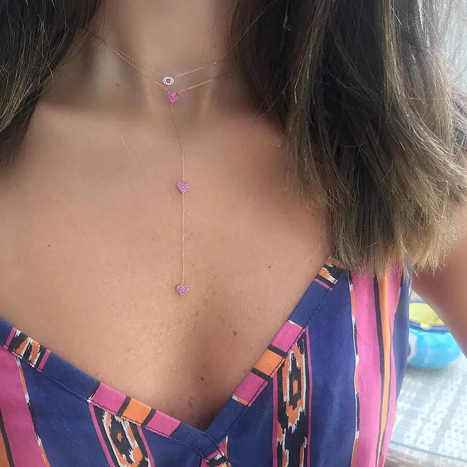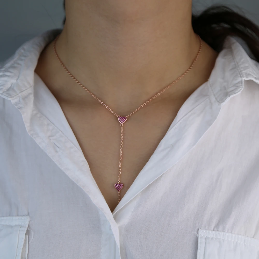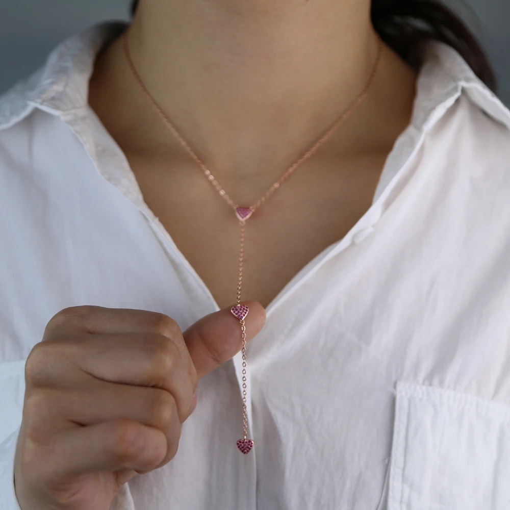 3 шт., красный рубин, кубический цирконий, cz сердце, Очаровательная Женская длинная цепочка, розовое золото, Y lariat, модное ожерелье15 дюймов = 38 см16 дюймов = 41 см18 дюймов = 46 см