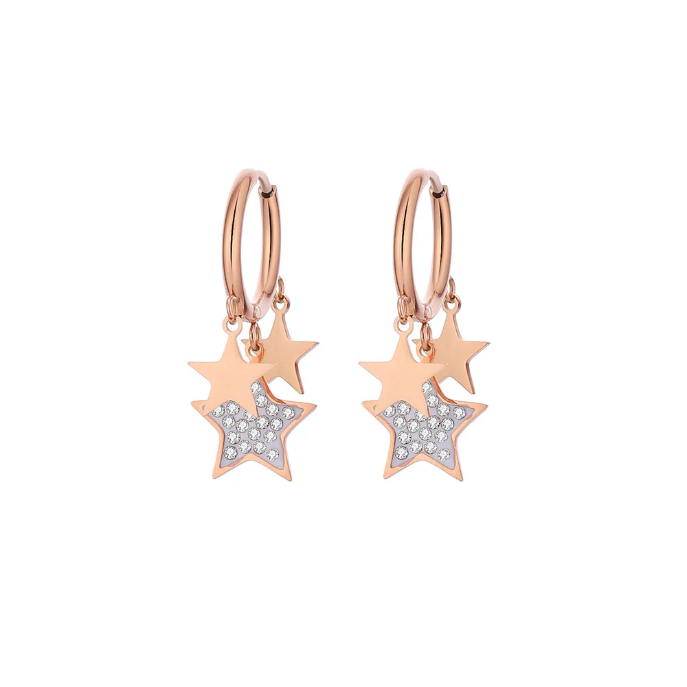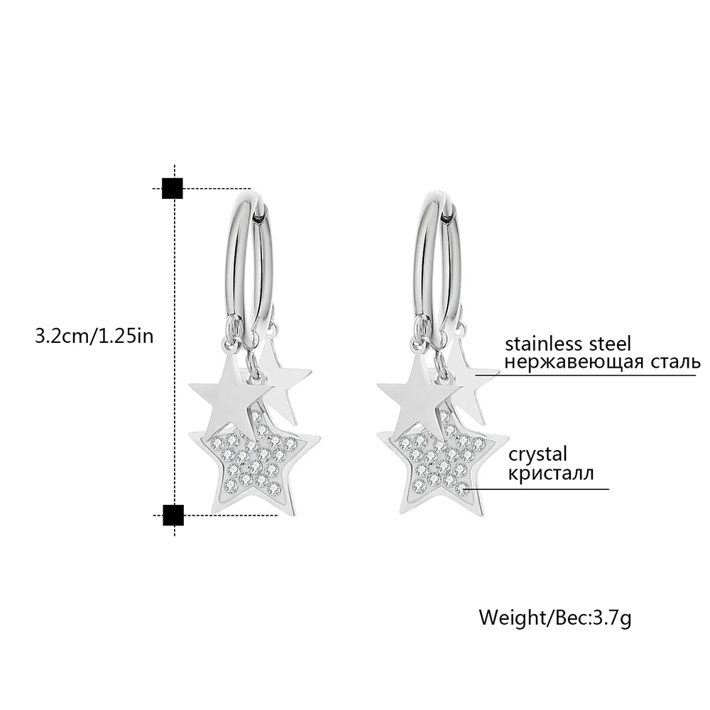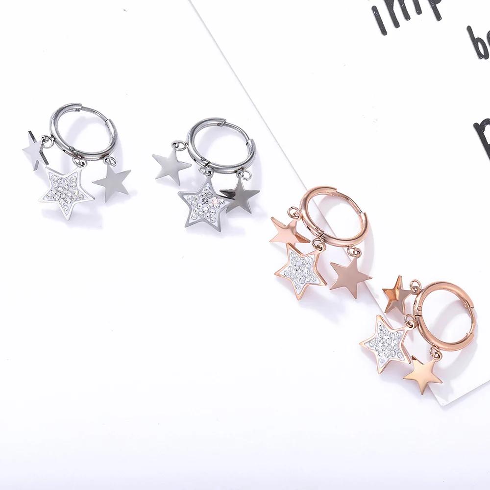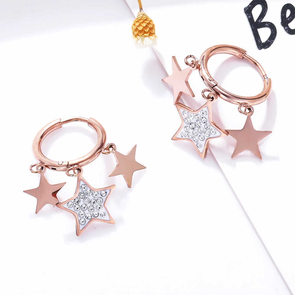 Серьги-кольца с кристаллами и звездами для друзей, Висячие ювелирные изделия из нержавеющей стали цвета розового золота, предотвращающие аллергию, Женские Ювелирные изделия