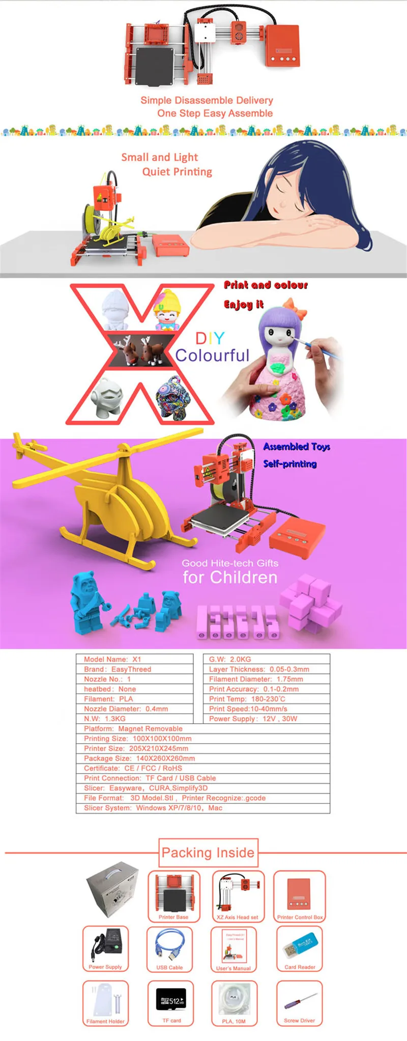 Мини-принтер 3D начального уровня Easythreed X1K7, печатная игрушка м, размер 100*100*100 м