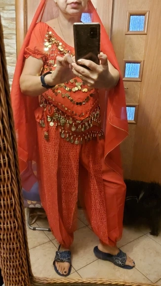 Поставляется с шарфом для головы, который достаточно длинный, чтобы покрыть заднюю часть и Монетный шарфик для украшения, это делает действительно Забавный шум, который не заставит вас перестать танцевать.