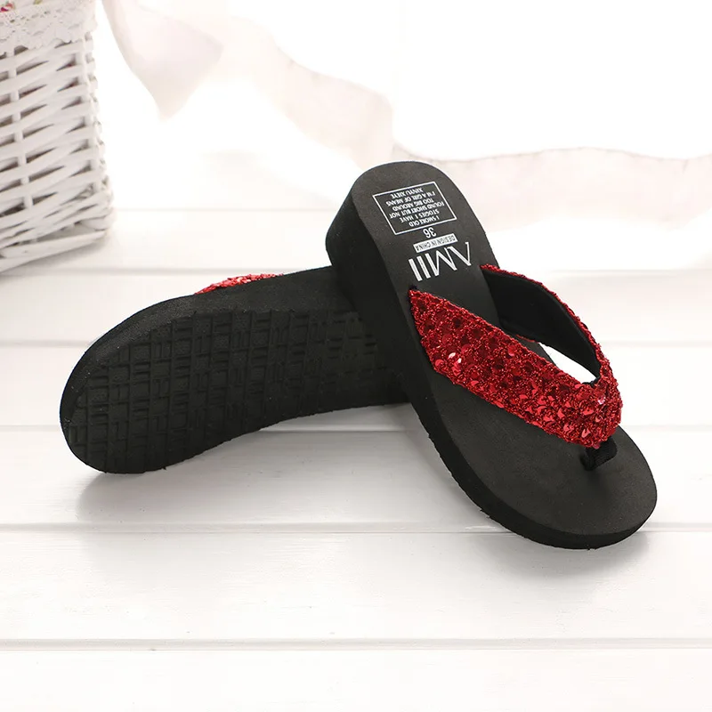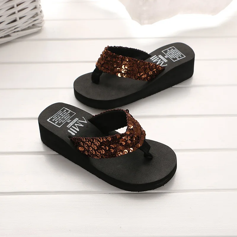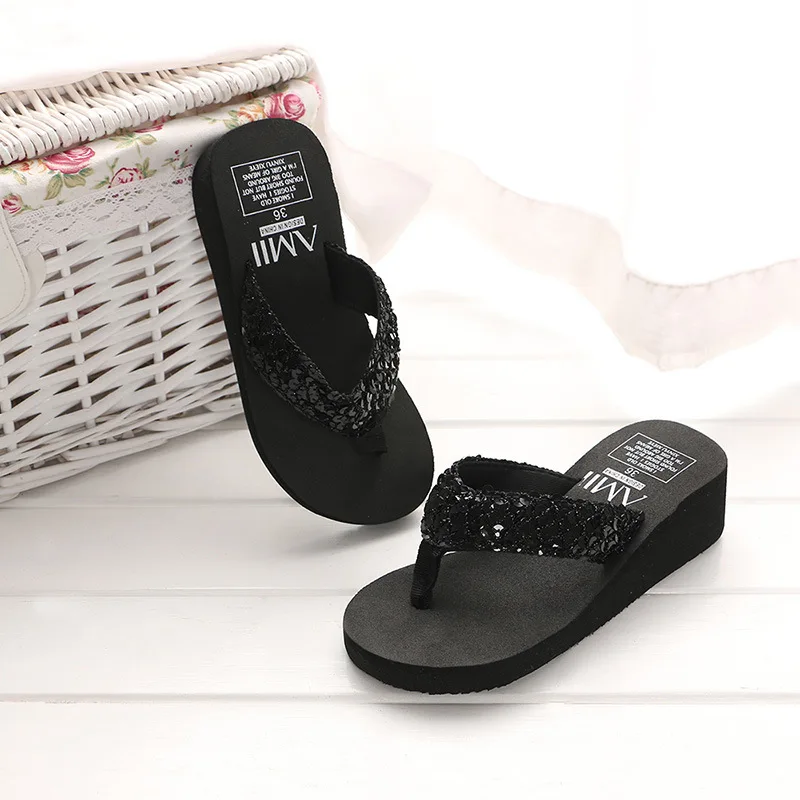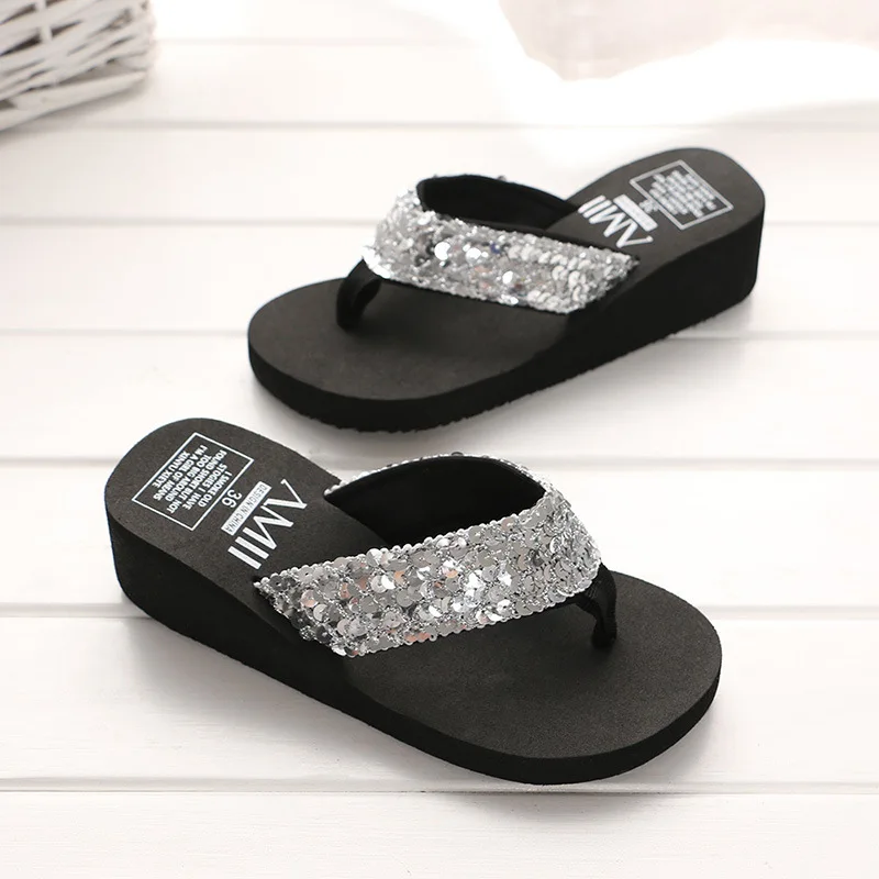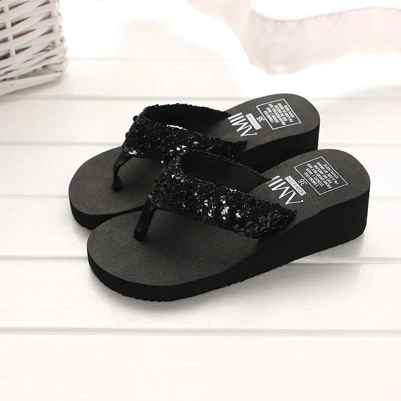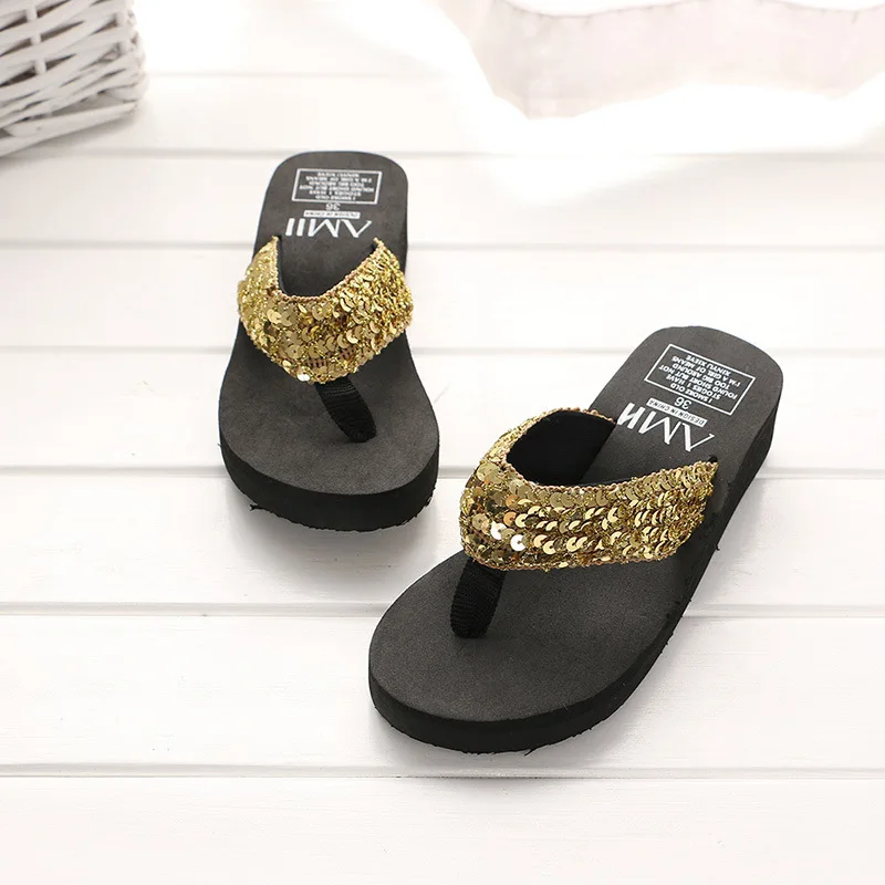 Шлепанцы женские в богемном стиле, пляжные сандалии с блестками, шлепанцы на платформе, желтые, черные, лето 2020
