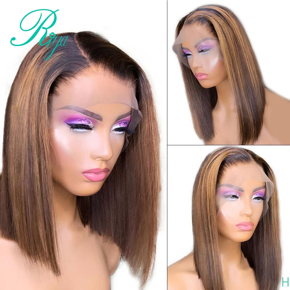 Медовая Блондинка прямой Боб срез тупой омбер цвет 4X4 парик на сетке спереди парики из человеческих волос на сетке для черных женщин предварительно выщипанные Реми