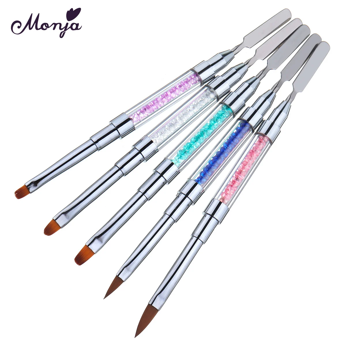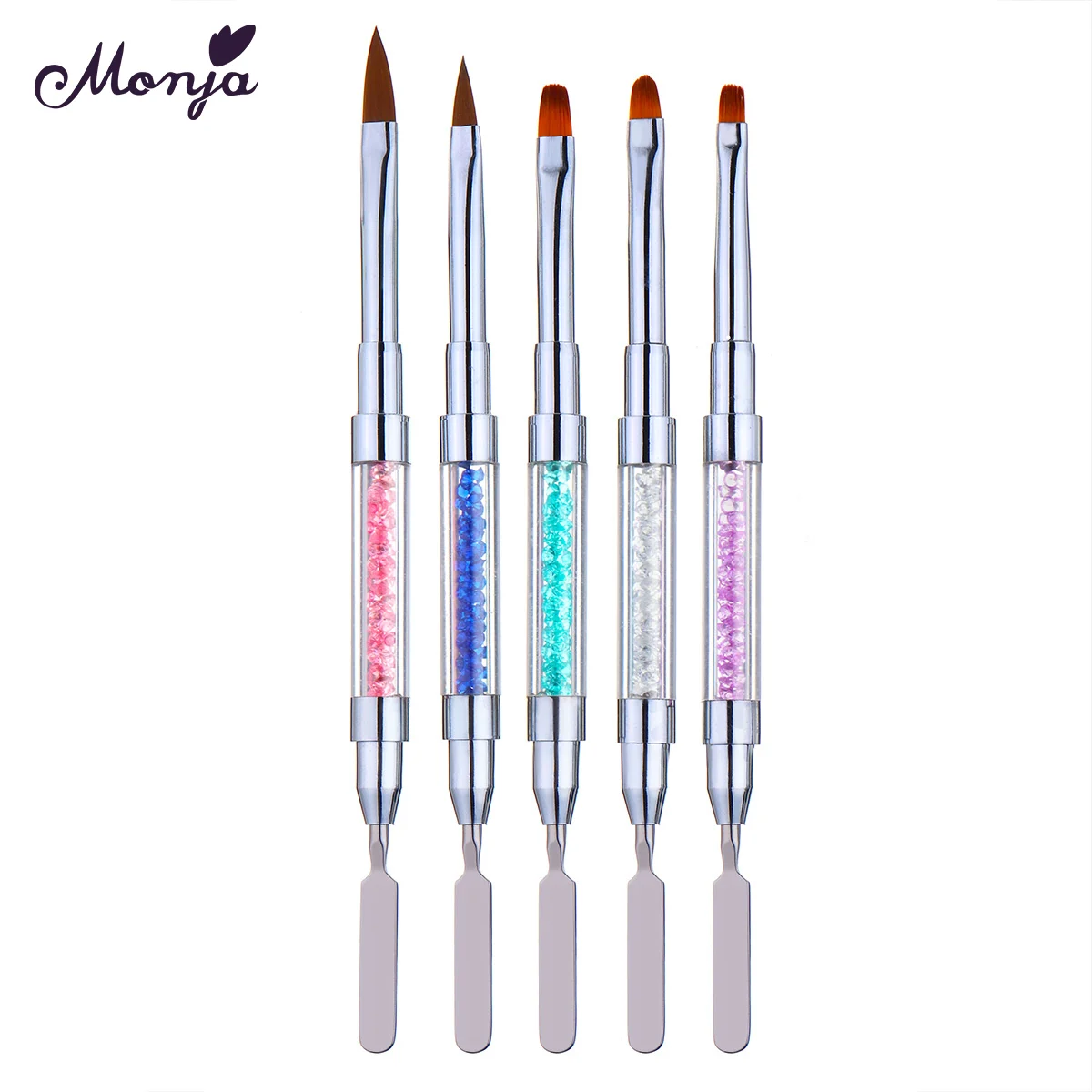 Monja 5 шт.компл., двойной конец, рисунок для дизайна ногтей, сделай сам, кисть для рисования, акриловый УФ-гель, удлиняющая ручка для рисования, ручка для удаления геля для ногтей, шпатель
