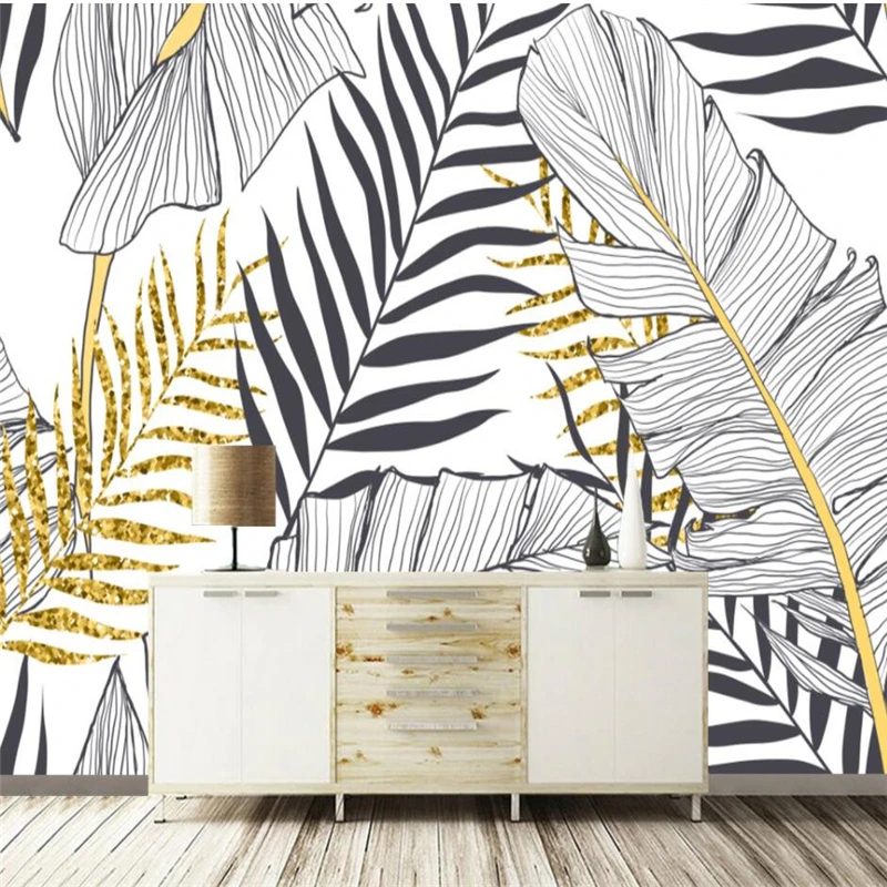 Обои на стену, в скандинавском стиле, с изображением банановых листьев, черно-белых пальм