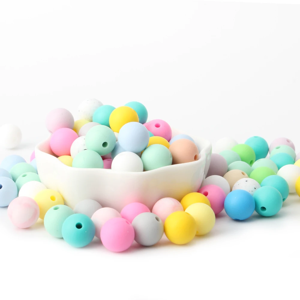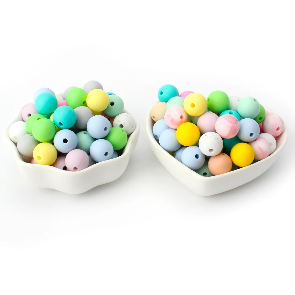 100 шт., круглые силиконовые бусины для прорезывания зубов, 12 мм