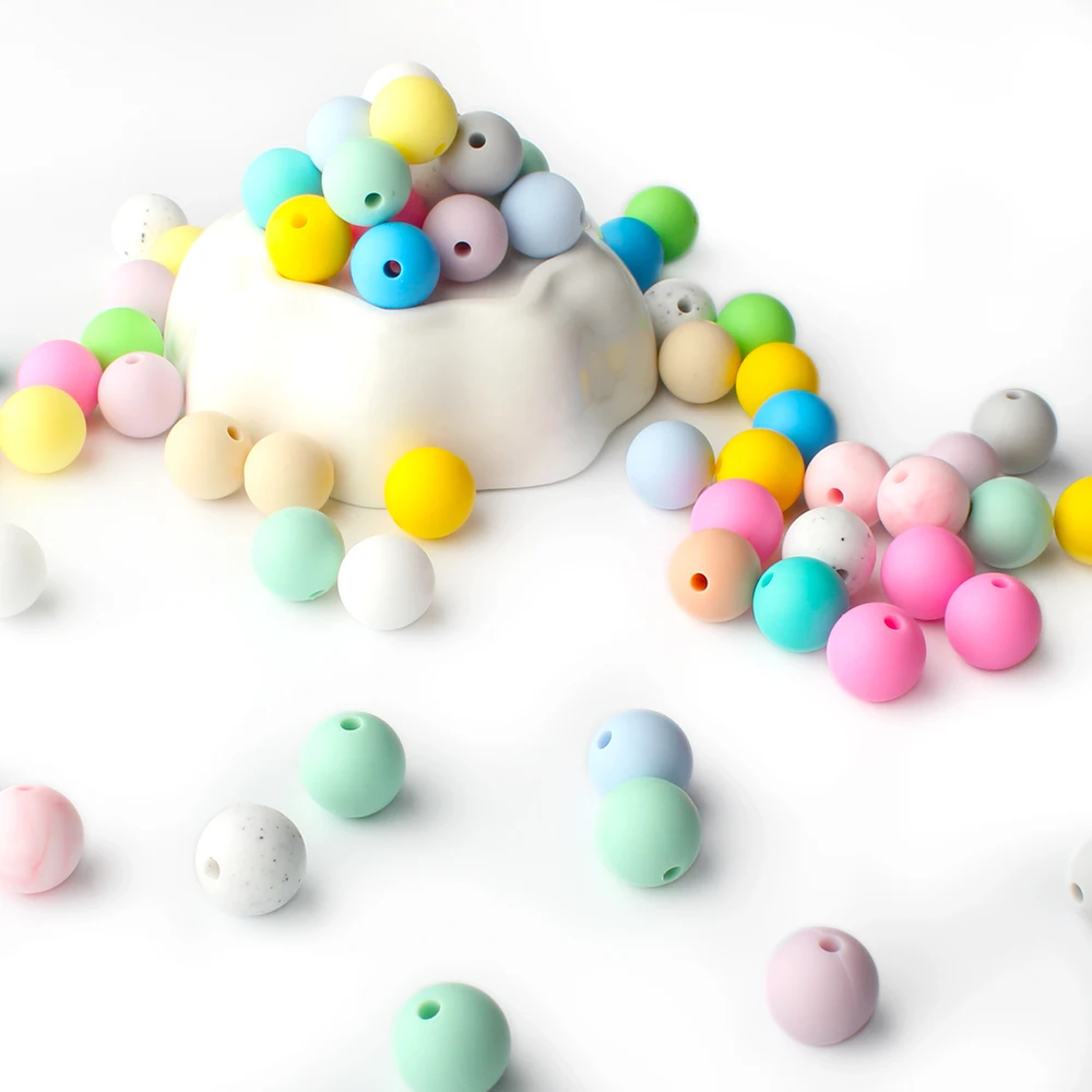 40 шт., силиконовые бусины для прорезывания зубов, 9 мм, 12 мм, 15 мм