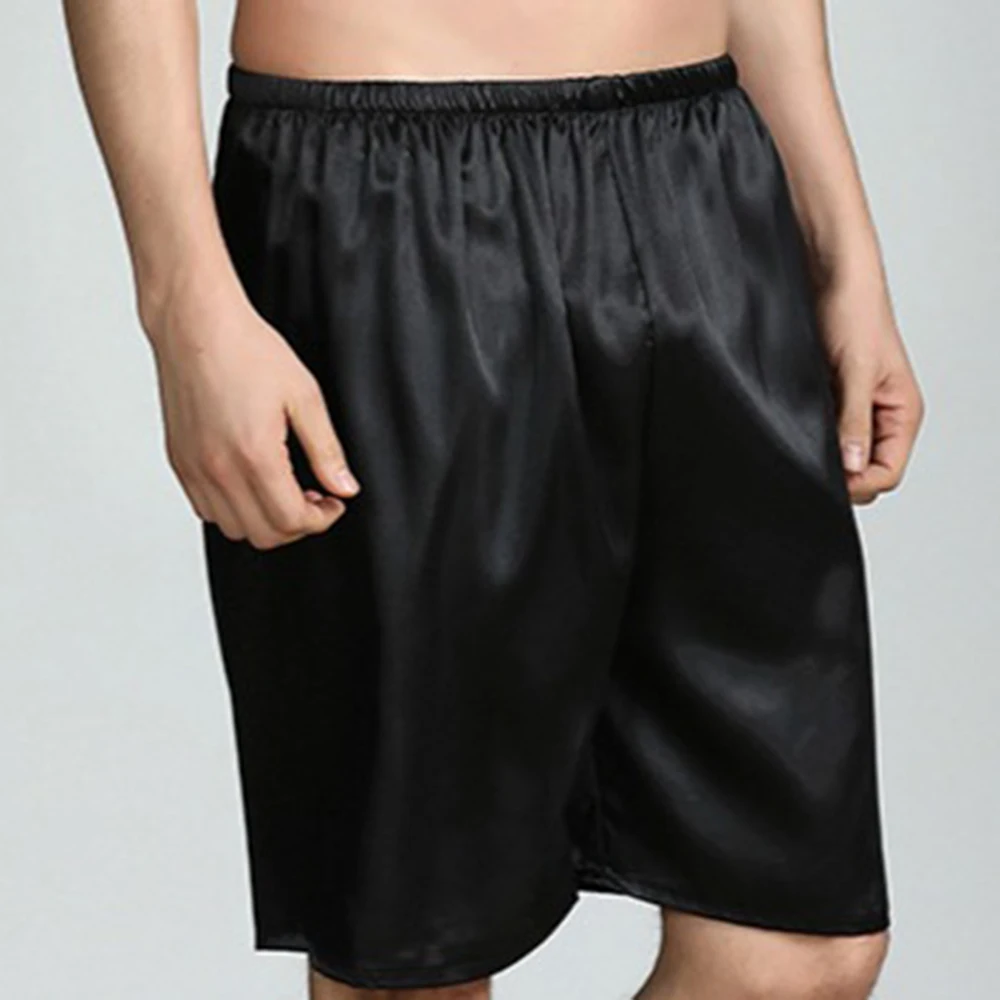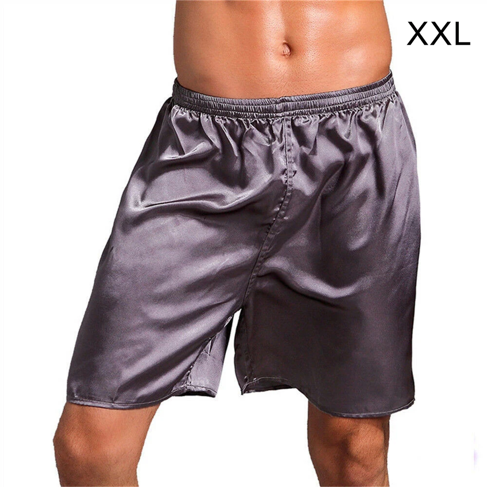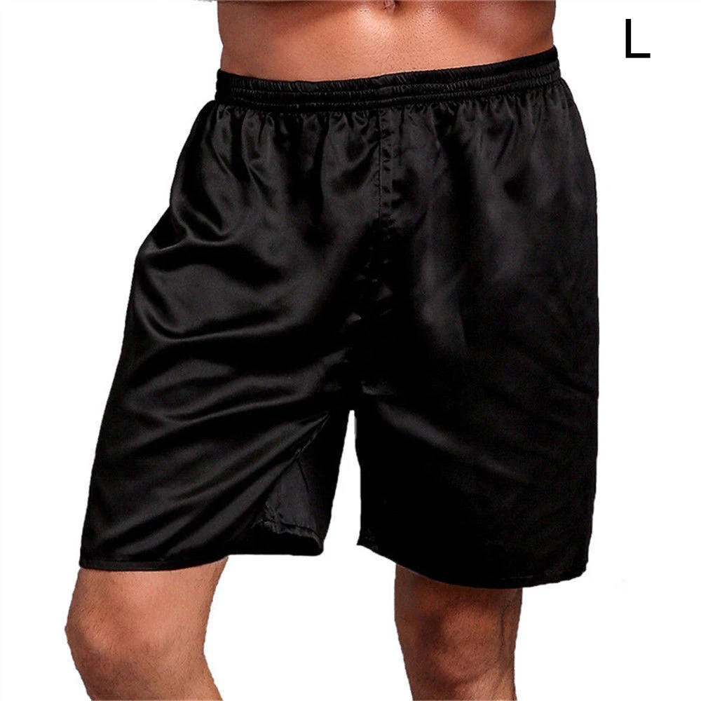 Летние шорты для сна для мужчин размера плюс шелковые атласные мягкие Пижамные брюки мужские однотонные свободные спальные трусы