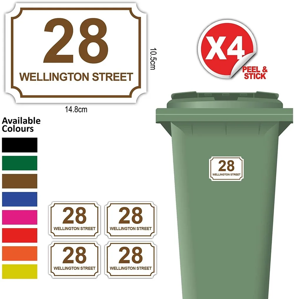 4 шт. персонализированные наклейки с номером колесной корзины с номером дома и названием улицы в классическом стиле