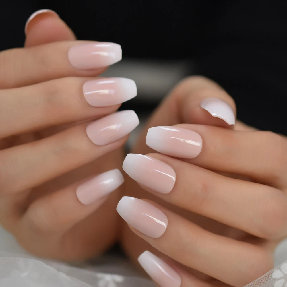 Средний Блестящий гроб для ногтей, градиентные натуральные балетки, Типсы для ногтей ежедневно с клеевыми наклейками, практические Типсы для ногтей