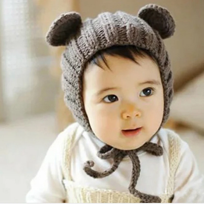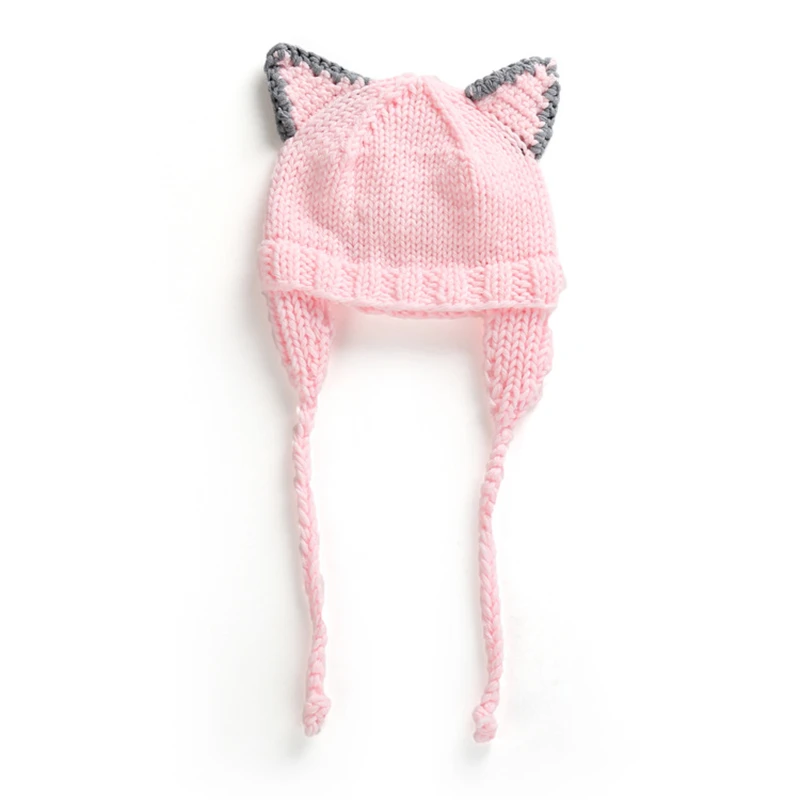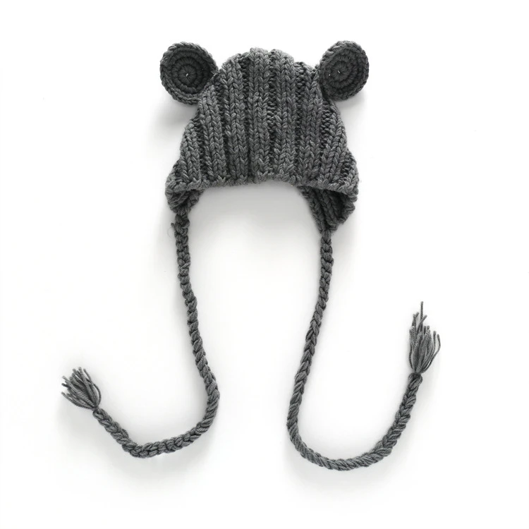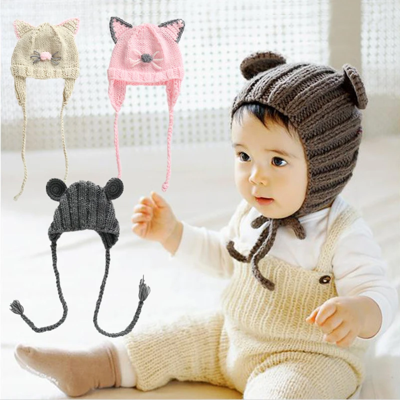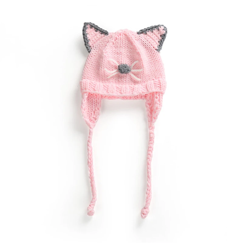 Вязаная Детская шапка унисекс, детские шапки для новорожденных, зимняя вязаная крючком шапочка для мальчиков и девочек с животными, кошкой, медведем