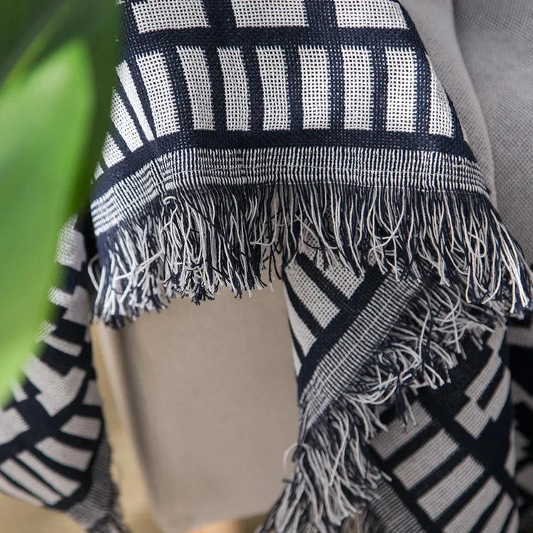 Черно-белый плед для кровати, ворсовое одеяло, трикотажное хлопковое, для путешествий, декоративное нитяное одеяло