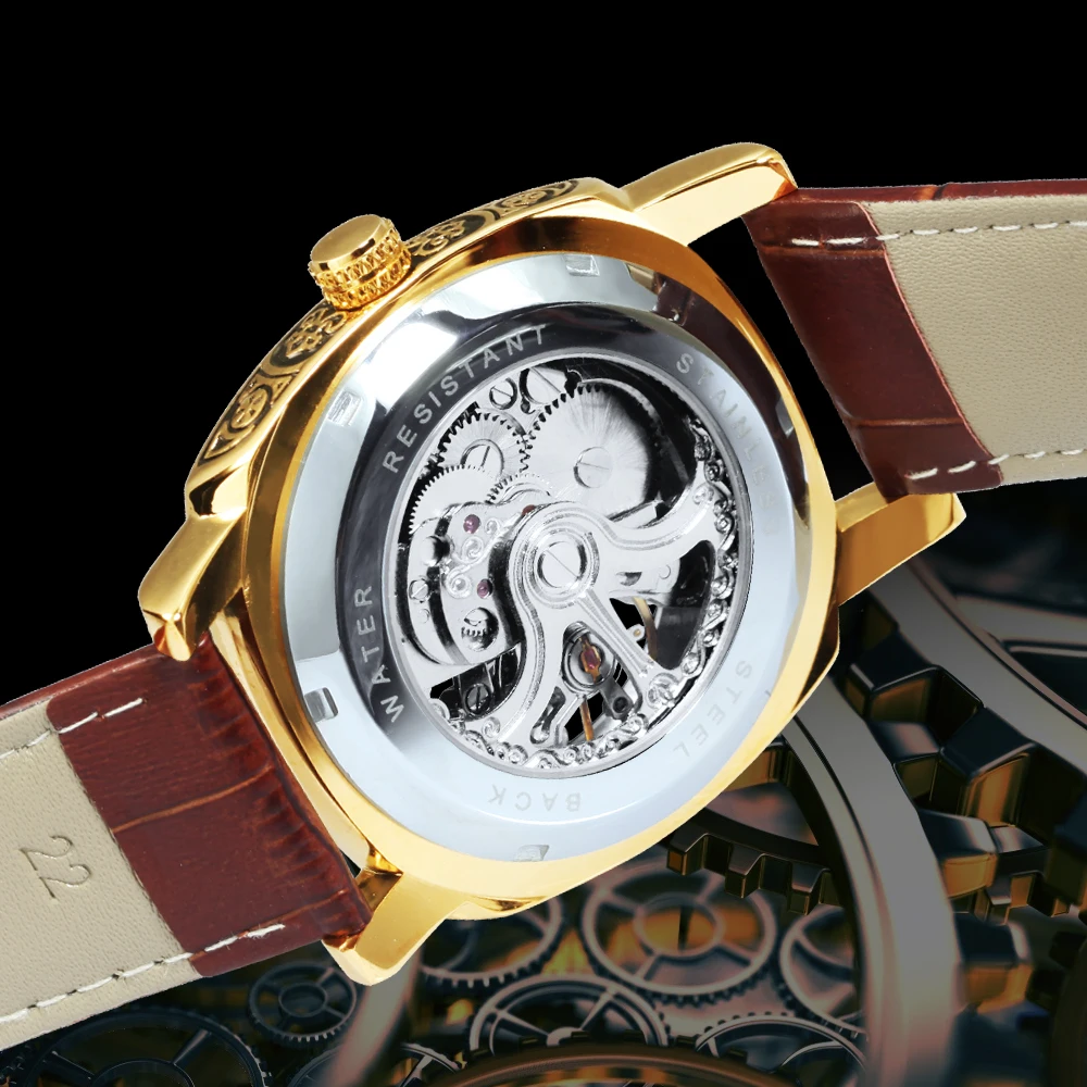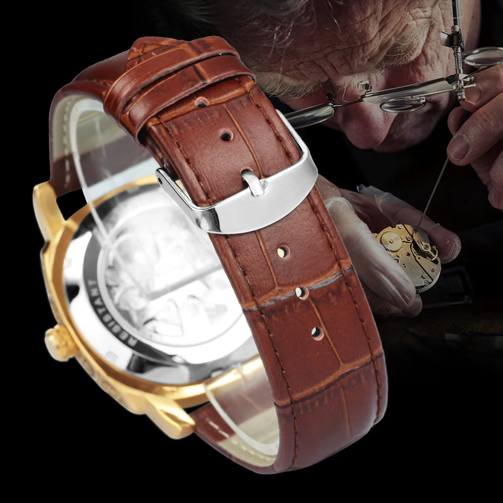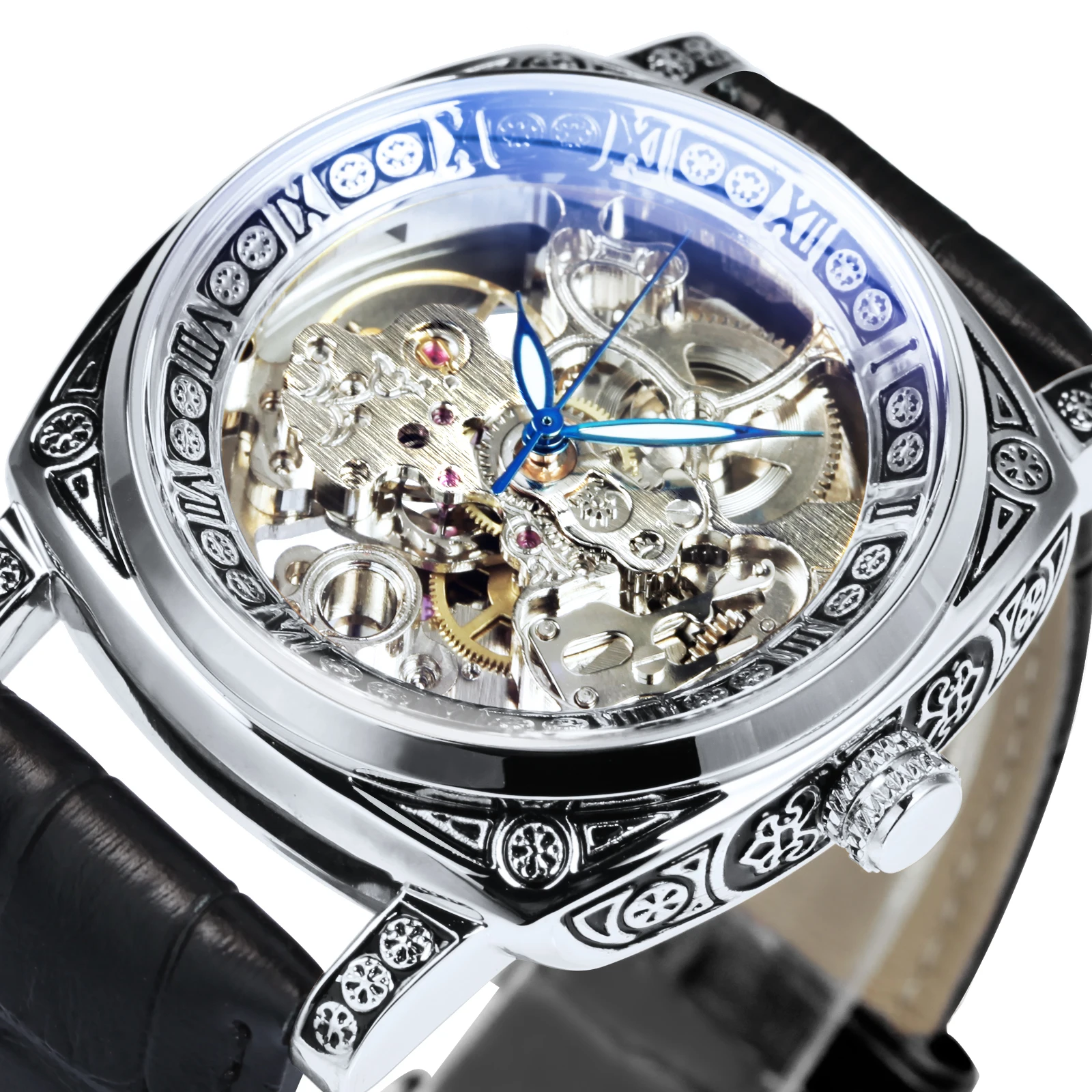 Часы-скелетоны Мужские автоматические механические, люксовые прозрачные квадратные светящиеся указки, резные движущиеся, с кожаным ремешком