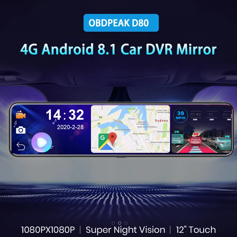 Видеорегистратор-зеркало заднего вида, 12 дюймов, 4 Гб + 32 ГБ, Android 8,1, Wi-Fi