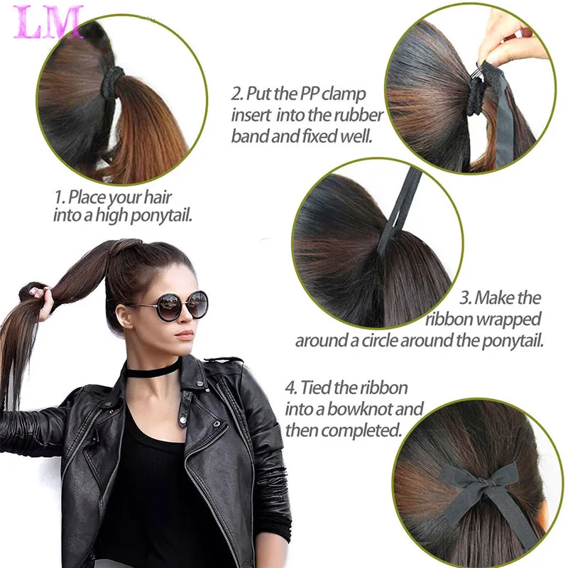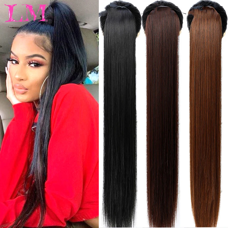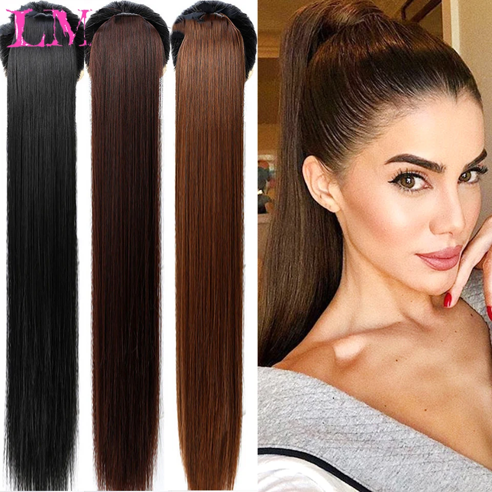 LM 30-дюймовые синтетические волосы, термостойкие прямые волосы с конским хвостом, искусственные волосы для наращивания волос, парики с конским хвостом