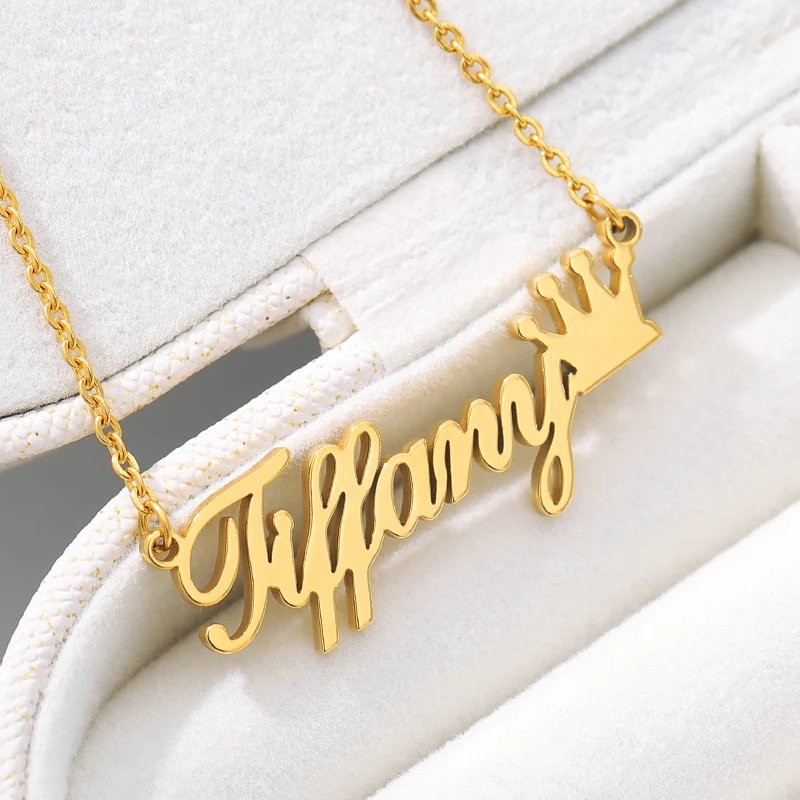 Ожерелье с короной и именем на заказ, цепочка из нержавеющей стали кулон-табличка с именем, ювелирные изделия, подарки на день рождения, ожерелье на заказ