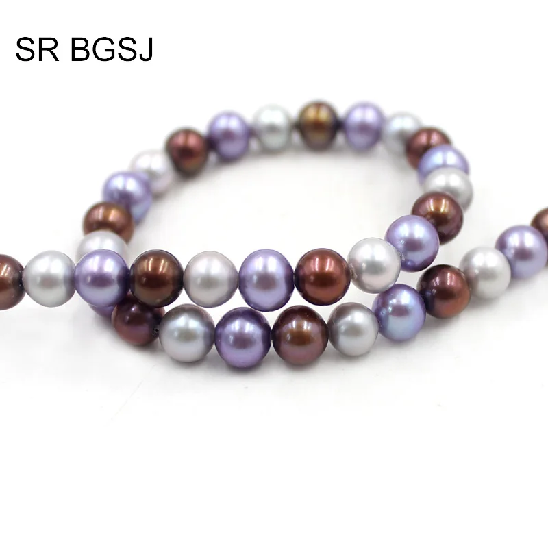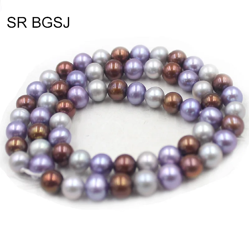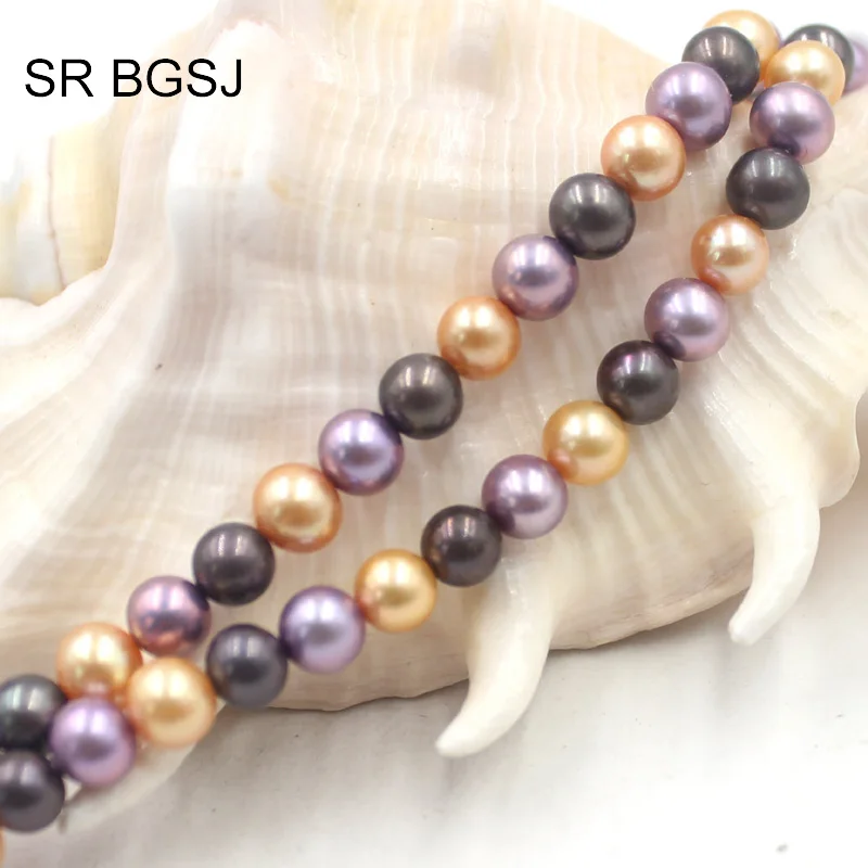 Бесплатная доставка SR 6-7 мм Красочные AAA класса натуральный круглый пресноводный жемчуг ювелирные изделия дизайн Бусины Strand 15''