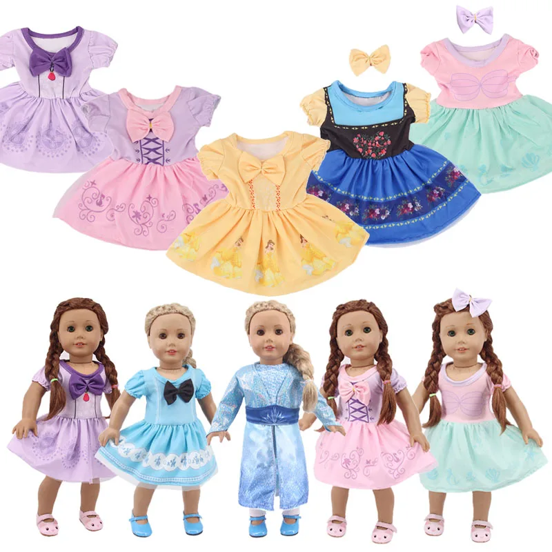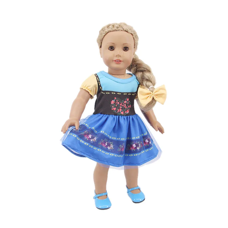 Кукольная одежда, мультяшное платье принцессы Эльзы, подходит для 18-дюймовых американских и 43 см кукол новорожденных, Рождественский подарок-игрушка для девочек