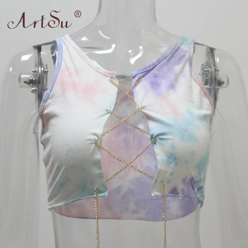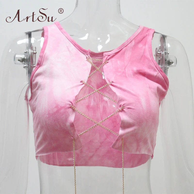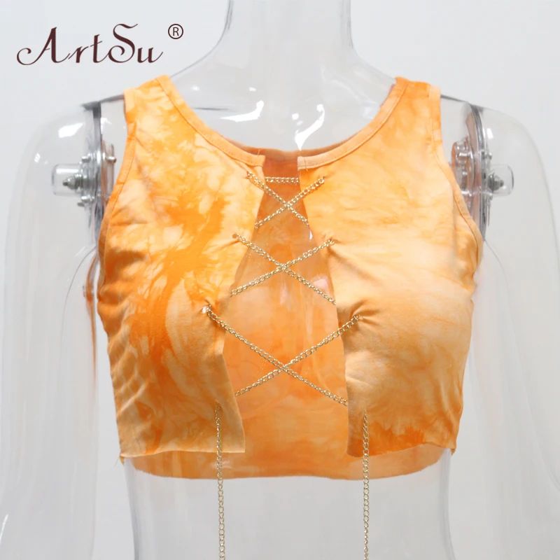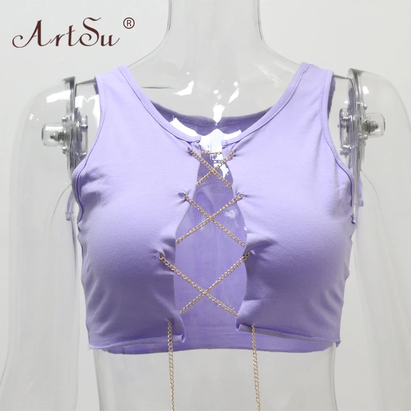 Женский укороченный топ ArtSu, серебристо-золотистый, с металлической цепочкой, на шнуровке, с вырезами, летний, белый, черный, красный