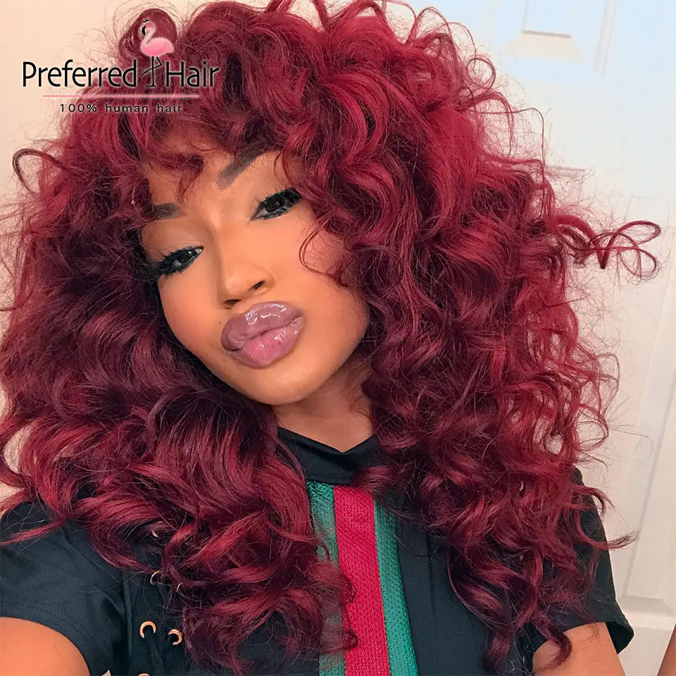 Предпочтительная полная челка 180% Плотность кудрявые человеческие волосы парик предварительно выщипанные кружевные передние парики малазийские Remy прозрачные кружевные парики для женщин