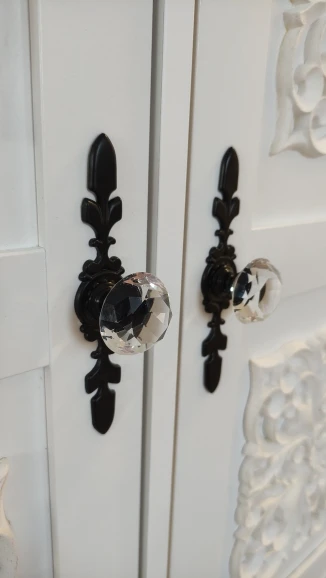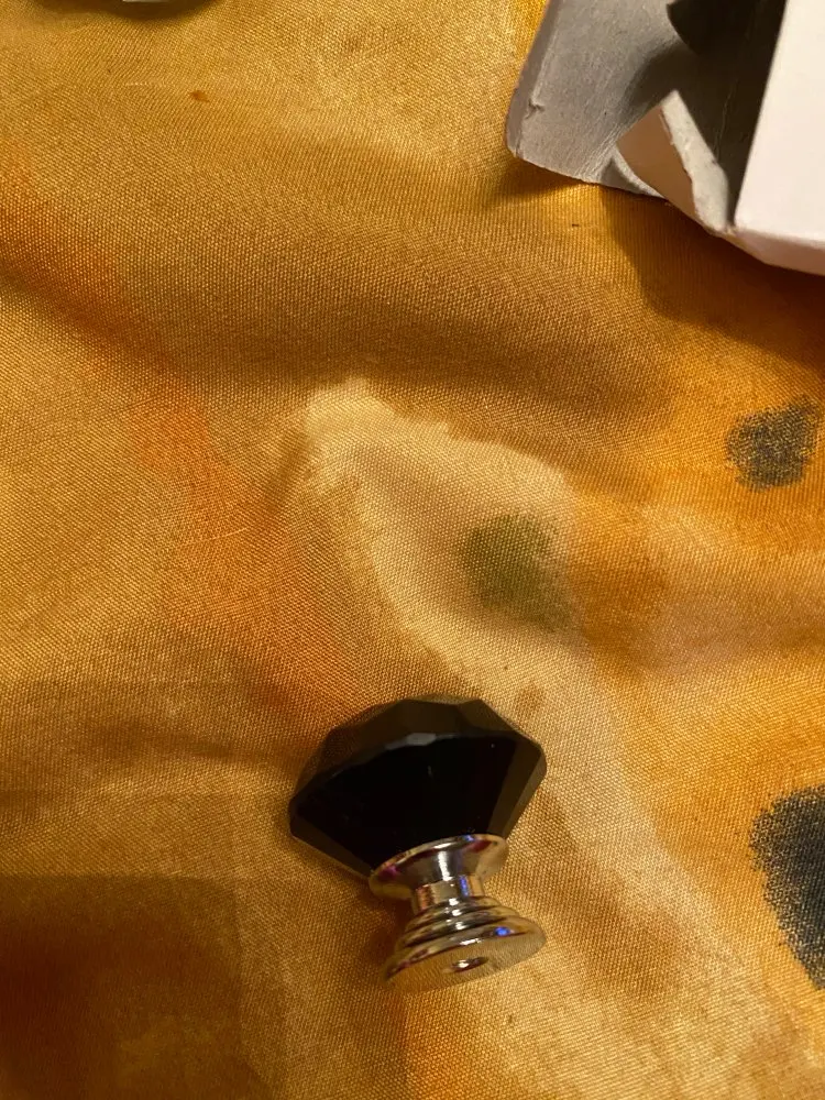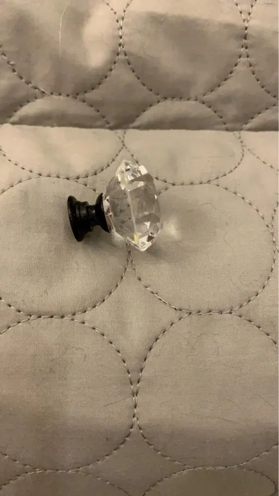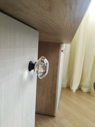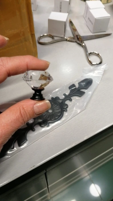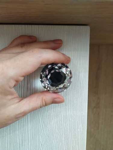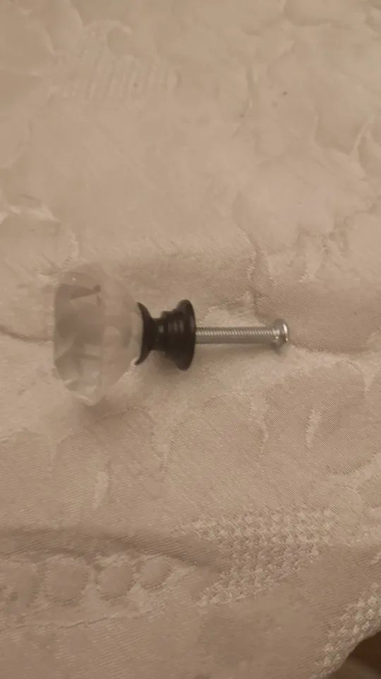 кристалл отличного качества! стекло. не пластик. сияет! очень красиво! доставка в Москву менее месяца. винты оказались очень длинными для фасада мебели. использовали другие. мне нужен был черный акцент поэтому выбрала с черным основанием. это влияет на визуальное восприятия кристалла. если вам нужен акцент на само стекло, то основание тогда лучше серебро брать.