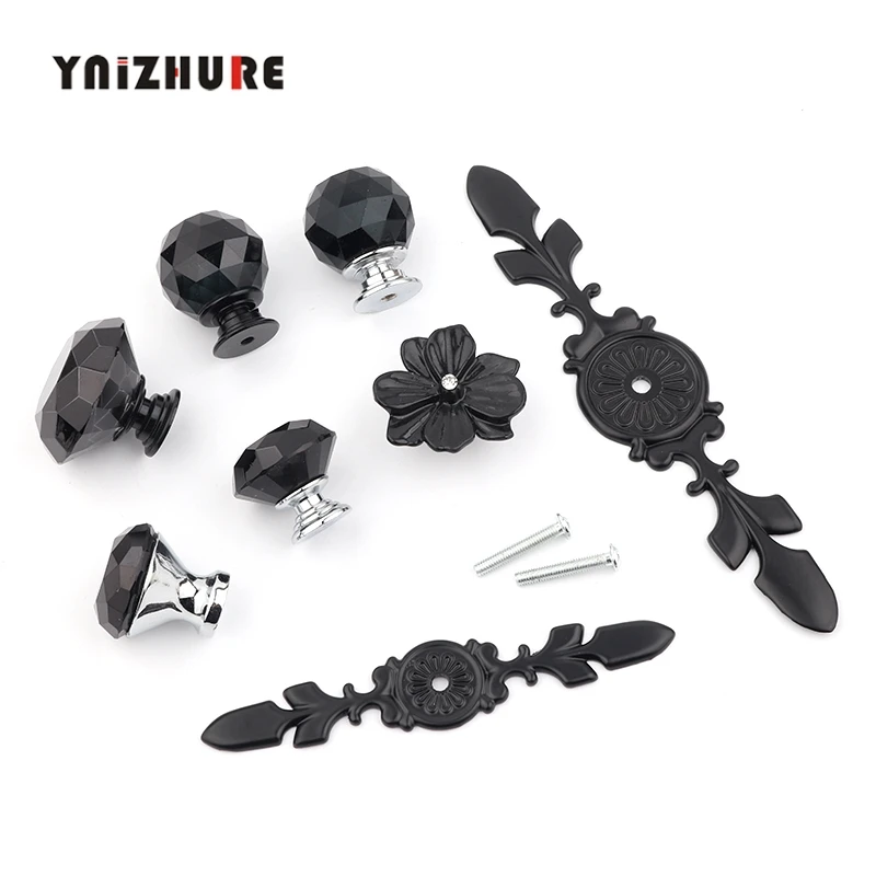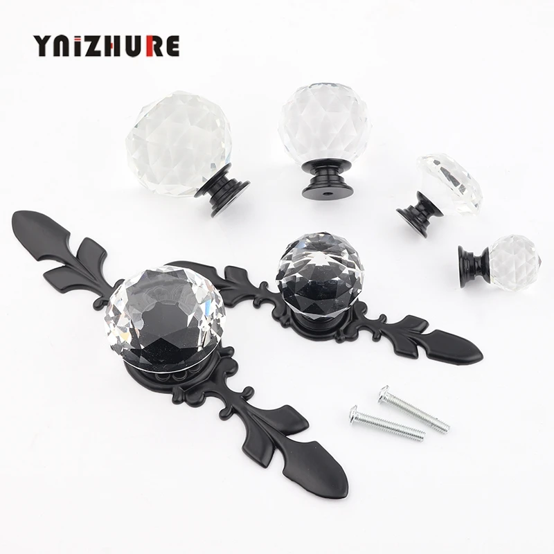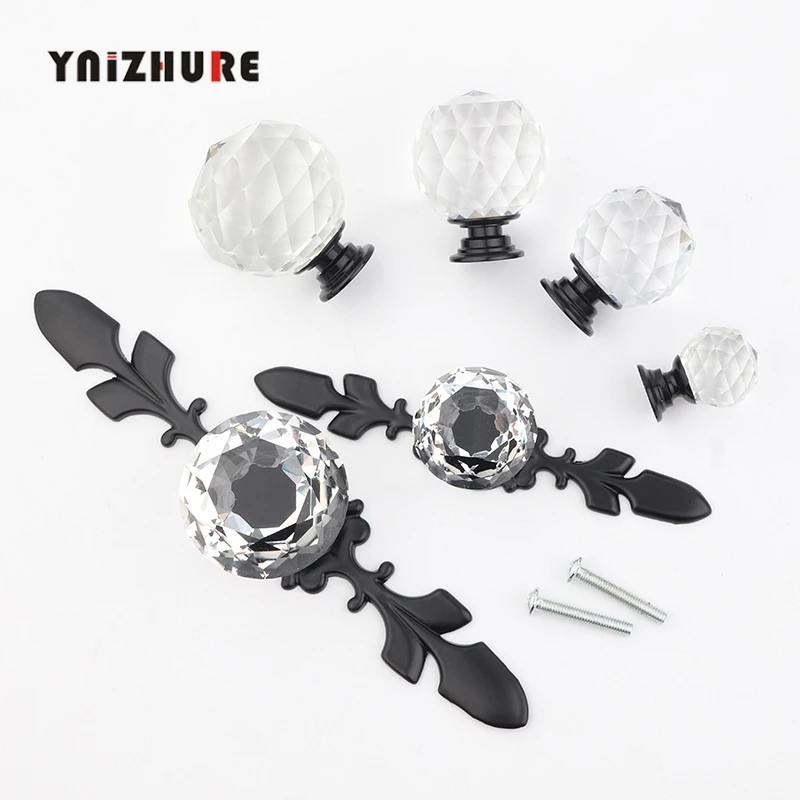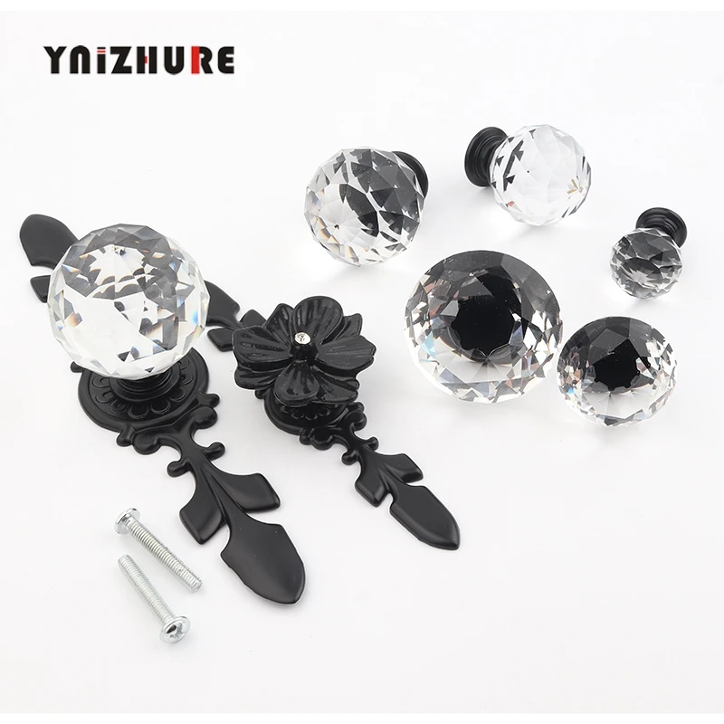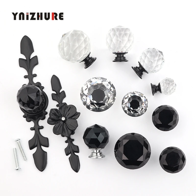 Новинка, черные ручки в форме алмаза, брендовый дизайн, ручки из хрустального стекла для шкафа, ящика, кухонного шкафа, двери, гардеробные ручки, фурнитура