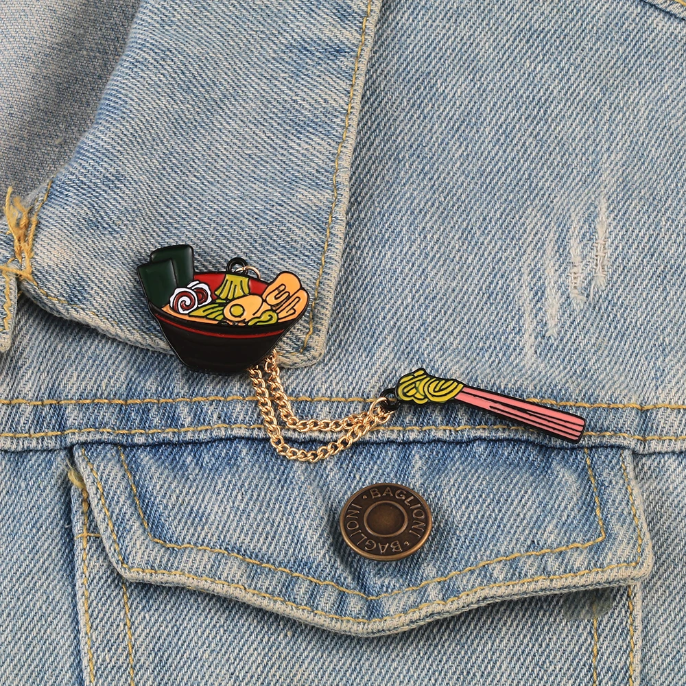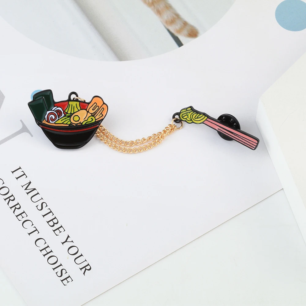 Японская лапша-суп Ramen Tonkotsu, металлическая цепь, эмалированные булавки, Мультяшные броши, значок на воротник, брошь, этикетка, булавка, ювелирные изделия, подарки