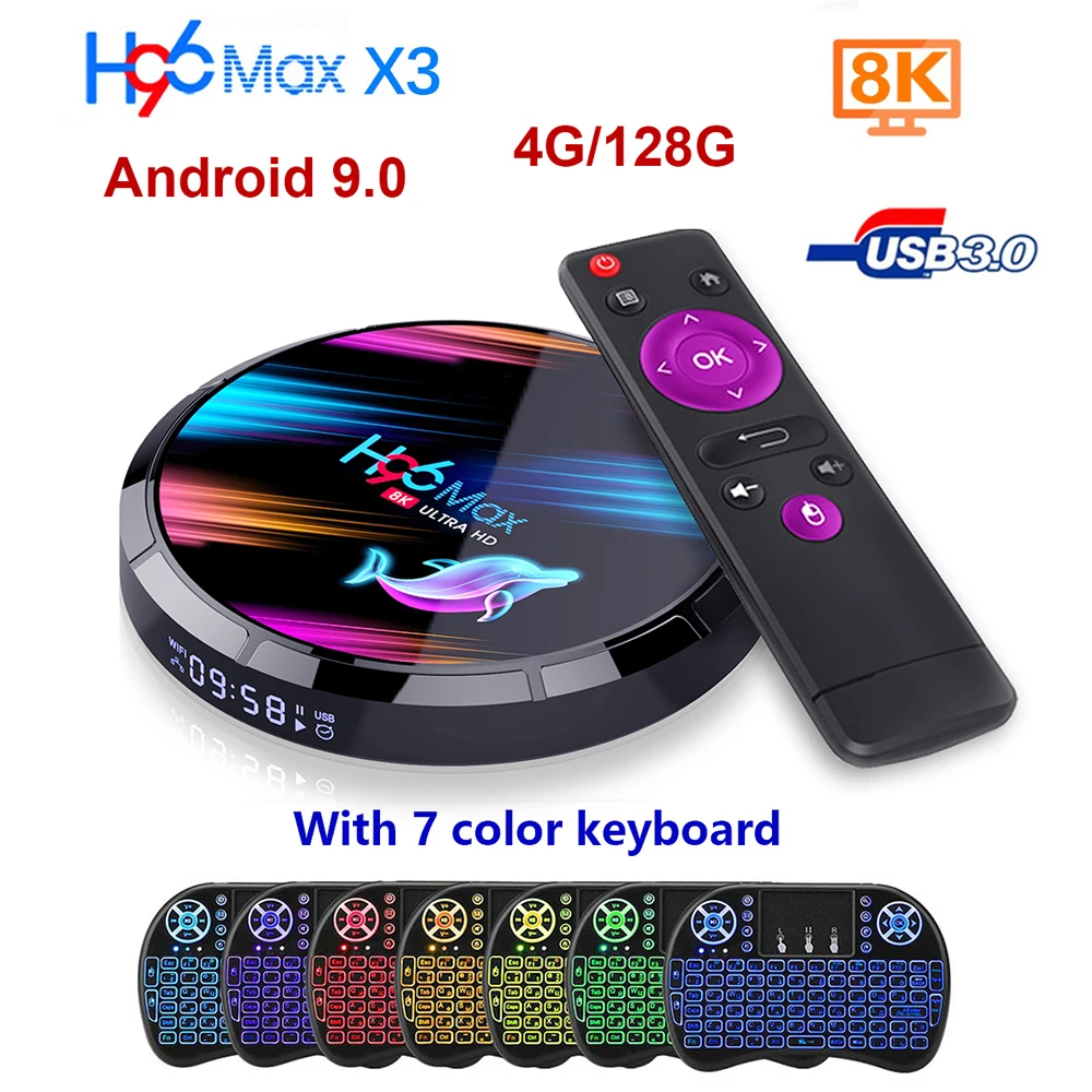 ТВ-приставка H96 MAX X3, Android 9,0, 8K, Amlogic S905X3, 4 + 128 ГБ
